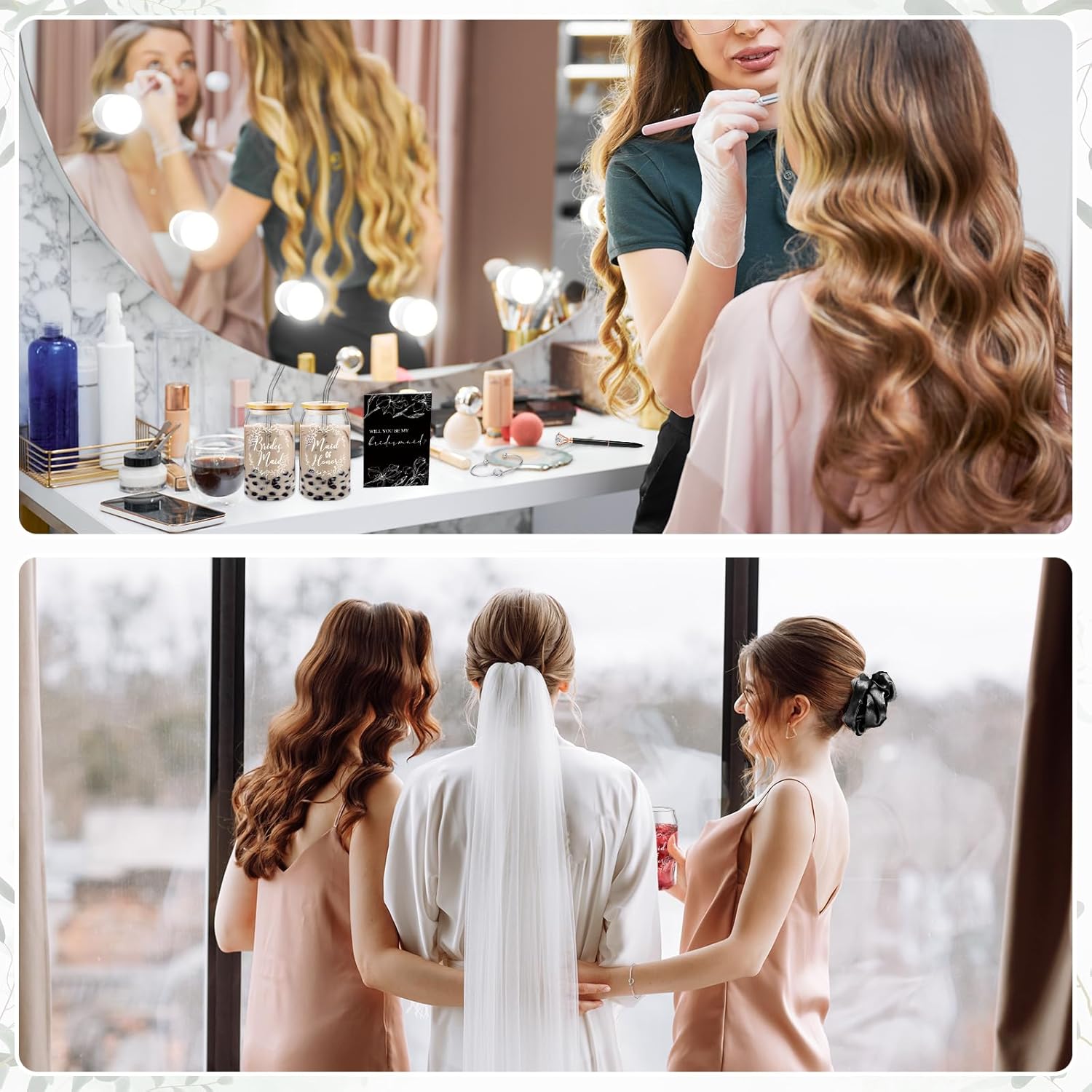 Features: These bridesmaid proposal gifts are ample in quantity and reliable in quality, which can be applied for a long time without worrying about broken. The bridesmaid proposal gifts can be applied as meaningful gifts to send to your bridesmaids on wedding, proposal party, anniversary party, bridal shower party and other occasions, bring much more happiness to them. Specifications: Material: glass for the cups, canvas for the makeup bags, paper for the cardsColor: as shown in the pictureSize: as shown in the picturePackage includes: 6 x Cups6 x Makeup bags6 x Cards6 x Pens6 x Scrunchies 6 x Bracelets Notes: Manual measurement, please allow slight errors on size. The color may exist a slight difference due to different screen displays. The words printed on our products are for decorative purpose only, not applied as trademark, our trademark is Irenare.