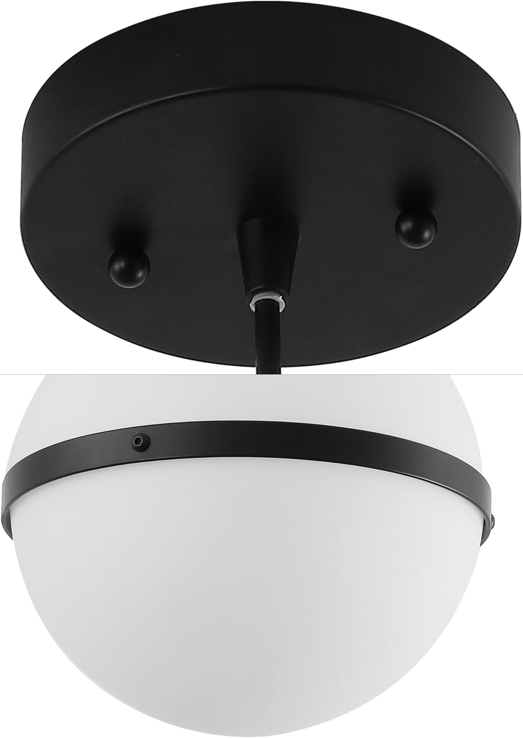 Modern design meets vintage style in this glass globe pendant light. The two-tone design features metal fittings and a frosted globe shade for an uncluttered, minimalist look. LED bulbs provide bright lighting for the kitchen island, dining table or office.