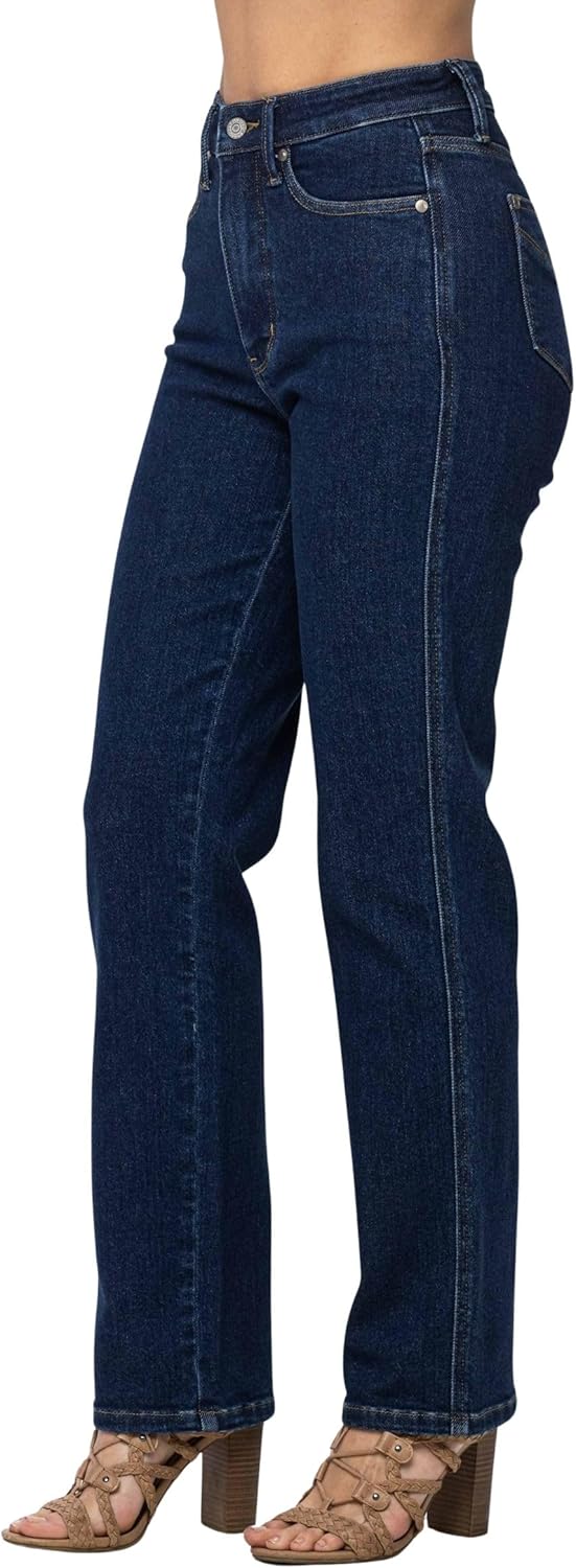 Upgrade your everyday denim with the Judy Blue Women's High-Rise Tummy Control Classic Straight Leg Jeans, designed to offer a flattering fit with just the right amount of structure. These jeans feature a high-rise waist and built-in tummy control panel that smooths and shapes for a confident, comfortable wear all day long. The classic straight leg cut delivers timeless style that pairs effortlessly with everything from casual tees to dressier blouses, making them a versatile addition to any wardrobe.Crafted from a premium denim blend with a touch of stretch, the Judy Blue Women's High-Rise Tummy Control Classic Straight Leg Jeans move with you while maintaining their shape. Subtle distressing and clean lines offer a modern twist on a traditional silhouette, perfect for any occasion. Whether you're running errands or heading out for the evening, these jeans provide the perfect blend of comfort, support, and style.