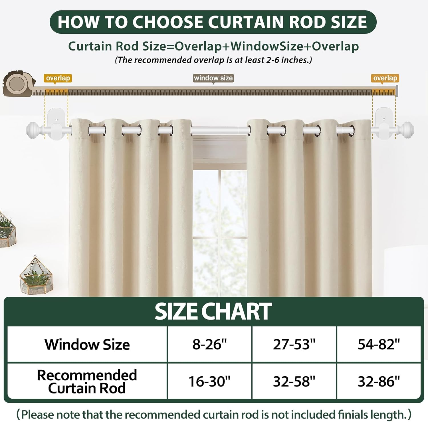 | Included Components | 10 x 5/8" outer rod & 2 x 1/2" inner rod, 4 x finials, 6 x brackets, 6 x screws & anchors, Installation Manual |