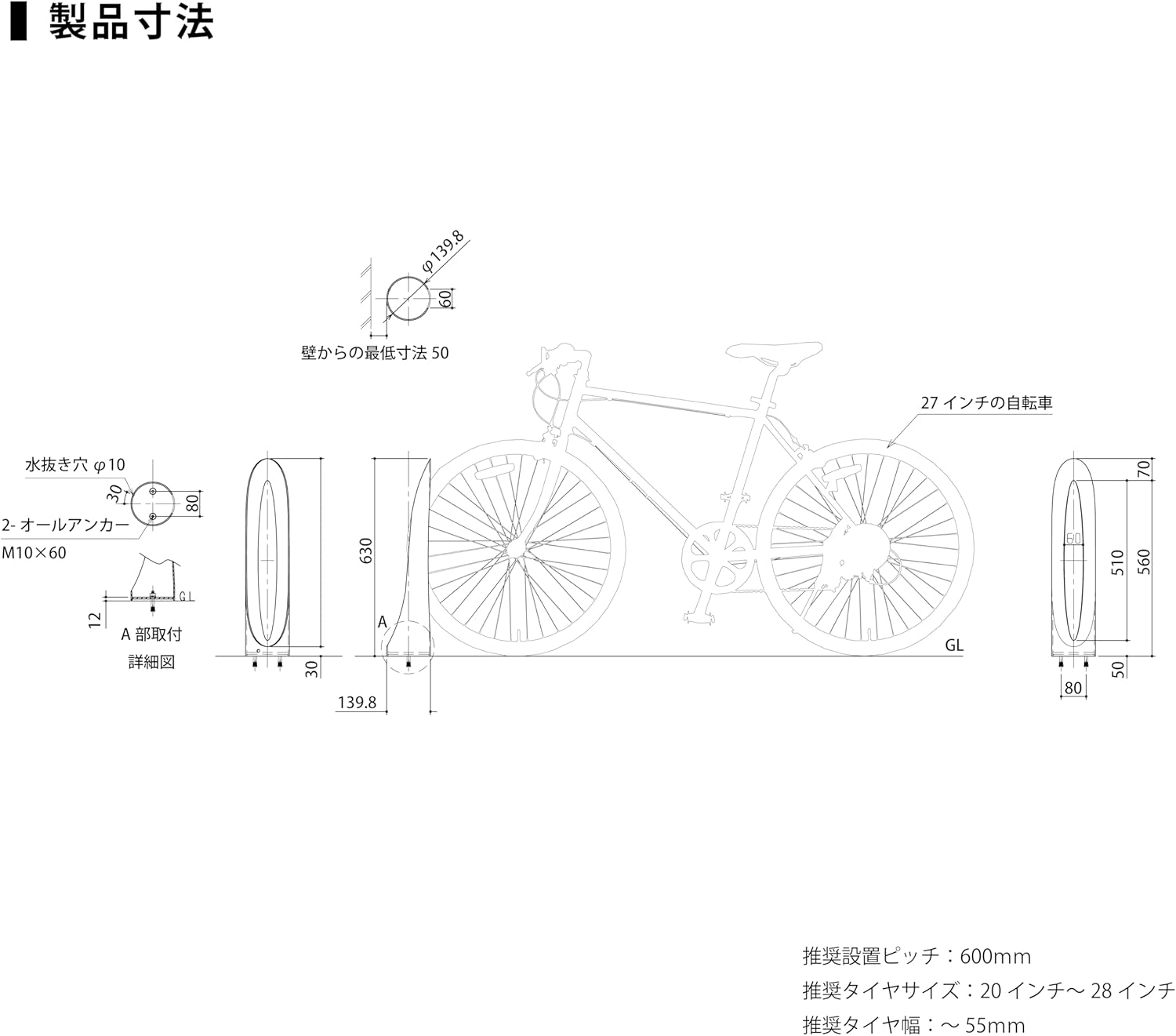 | Material | Steel (main unit, steel pipe, STK400, φ139.8, t3.6, base: SPHC t6.0) |