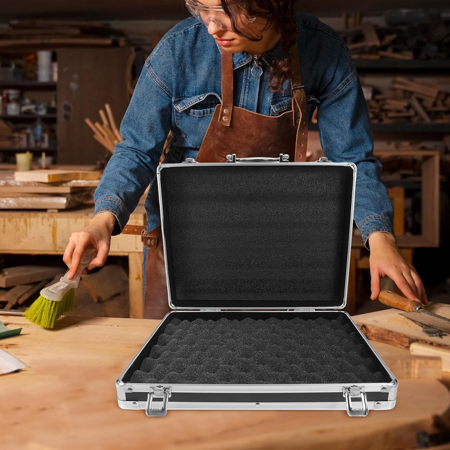 Package List 1pcs Toolbox (1pcs box, 2pcs keys ) Features -Shockproof design: the shockproof design ensures that your equipment and tools are well protected from impacts and vibrations, keeping them safe and secure tool organiser -Product Info:Toolbox -Lightweight and durable: made from durable aluminum, this tool box is both lightweight and durable, making it easy to carry and for various uses travel suitcase -Convenient carrying: designed as an aviation case, it is easy to carry and transport, making it ideal for professionals on the go capacity storage boxes -Foam interior: the foam interior lining provides additional protection for your files and Instrument, preventing any damage during transit equipment storage case -Size:37.00X28.50X7.50cm/14.54X11.20X2.95in -Material:Aluminium alloy -Color:Black -Multifunctional dividers: equipped with multiple dividers, this tool box allows you to organize your tools and equipment efficiently, ensuring everything has its place aluminium alloy caseGoods Descriptionsmall tool case The portable design makes it easy to carry, while the foam interior offers additional cushioning to prevent damage.tools handy case NOTE:For certified professionals only This aluminum tool case is designed to provide durable protection for your valuable equipment.large capacity storage boxes Its shockproof construction ensures that your tools and Instrument remain safe during transport