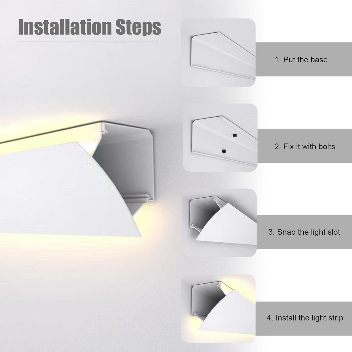 Elevate your living space with our Ceiling Molding LED Aluminum Channel, a modern alternative to traditional gypsum board paneling. Designed to resist yellowing, UV damage, and temperature fluctuations, this channel is perfect for enhancing the ambiance of any room while showcasing your refined taste. **Product Specifications:** - **Color:** White - **Material:** High-Quality Aluminum Alloy - **Length:** Customizable to fit your needs - **Width:** 85 mm (3 3/8") - **Compatible LED Width:** ≤ 8 mm (1/4") **Key Features:** - ** Lighting Effect:** Achieve a seamless and uniform glow that illuminates your space beautifully. - **Versatile Installation Options:** Easily mount on walls or ceilings to create the perfect lighting design. - **User-Friendly Setup:** No need for slotting; installation is straightforward and hassle-free. - **Durable Construction:** Built to withstand deformation, ensuring long-lasting performance. - **Customizable Length:** Simply cut to your desired size for a perfect fit. **Package Includes:** - 1 x Aluminum Channel Profile - All necessary accessories and screws for installation **Helpful Tips:** - Please note that LED strips are not included; select strips with a width of ≤ 8 mm for compatibility. - For a polished finish, consider using seam sealant or repair paste (not included) to create seamless connections. - After your purchase, we will confirm the product size via email, so please keep an eye on your inbox. - Color variations may occur due to different monitor settings and lighting conditions. - Manual measurements may show a slight error of 1-2 cm; please refer to the actual size for accuracy. **Customer Support:** We are committed to your satisfaction. If you have any questions or need assistance, feel free to reach out to us anytime. Transform your space effortlessly with our Ceiling Molding LED Aluminum Channel!