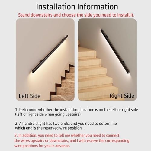 Introducing our innovative LED Illuminated Handrail, designed to enhance safety and aesthetics in your home. This unique product seamlessly integrates a stylish handrail with an LED lighting channel, illuminating your stairs and providing a secure environment for your family during nighttime walks. The soft glow not only guides your loved ones but also adds a captivating touch that will impress neighbors and guests alike. Safety is our top priority. The LED light strips are discreetly housed within the handrail, equipped with a diffuser cover to provide a clean appearance while keeping the lights safe from curious children. Crafted from high-quality materials, this handrail is both waterproof and resistant to rust and corrosion, making it perfect for various settings, whether indoors or outdoors, including coastal areas. Just remember to seal all electrical connections for optimal performance. We offer two convenient lengths—39.3 inches (1 meter) and 59 inches (1.5 meters)—with a robust thickness of 1.38 inches (35 mm), ensuring it can support up to 220 lbs. Each package includes everything you need for installation: one aluminum handrail, LED light strips, a sensor, two end caps, and screws. For a successful installation, please keep these tips in mind: 1. The handrail must be connected to a power supply to activate the lights, similar to installing a chandelier. 2. Consider your installation direction carefully; stand on the lower level and choose the side that best suits your needs. 3. Let us know if you prefer the wiring to be connected from upstairs or downstairs, and we will prepare the appropriate wire positions in advance. Elevate your home’s safety and charm with our LED Illuminated Handrail today!