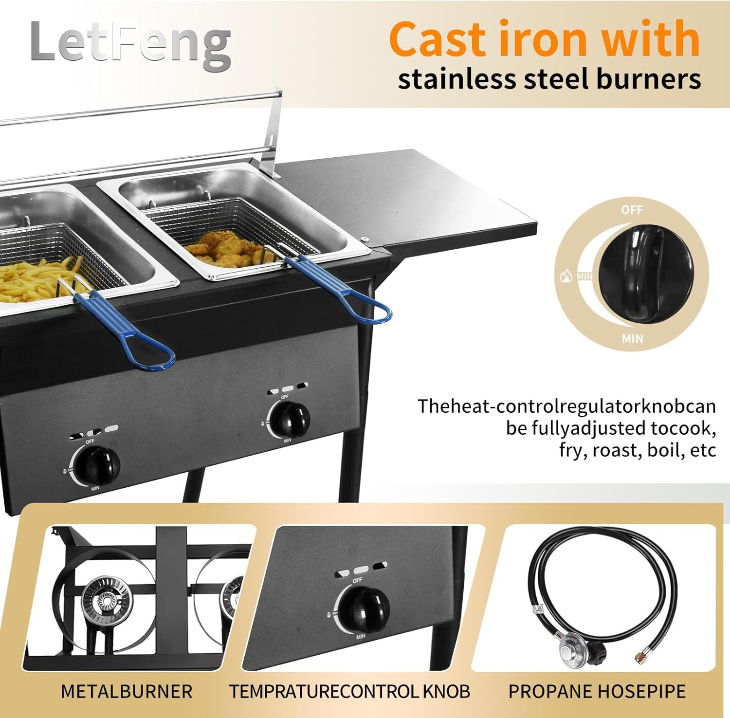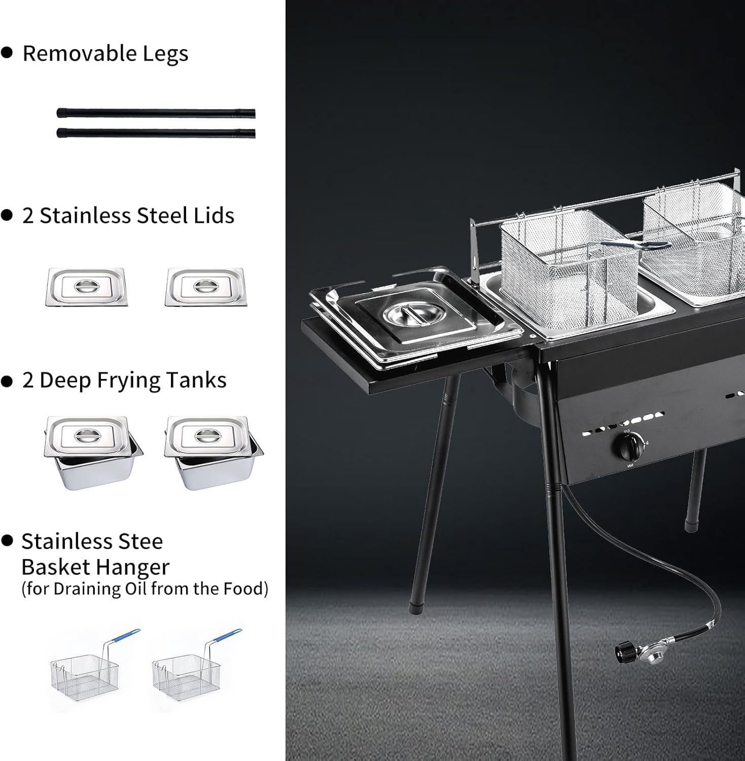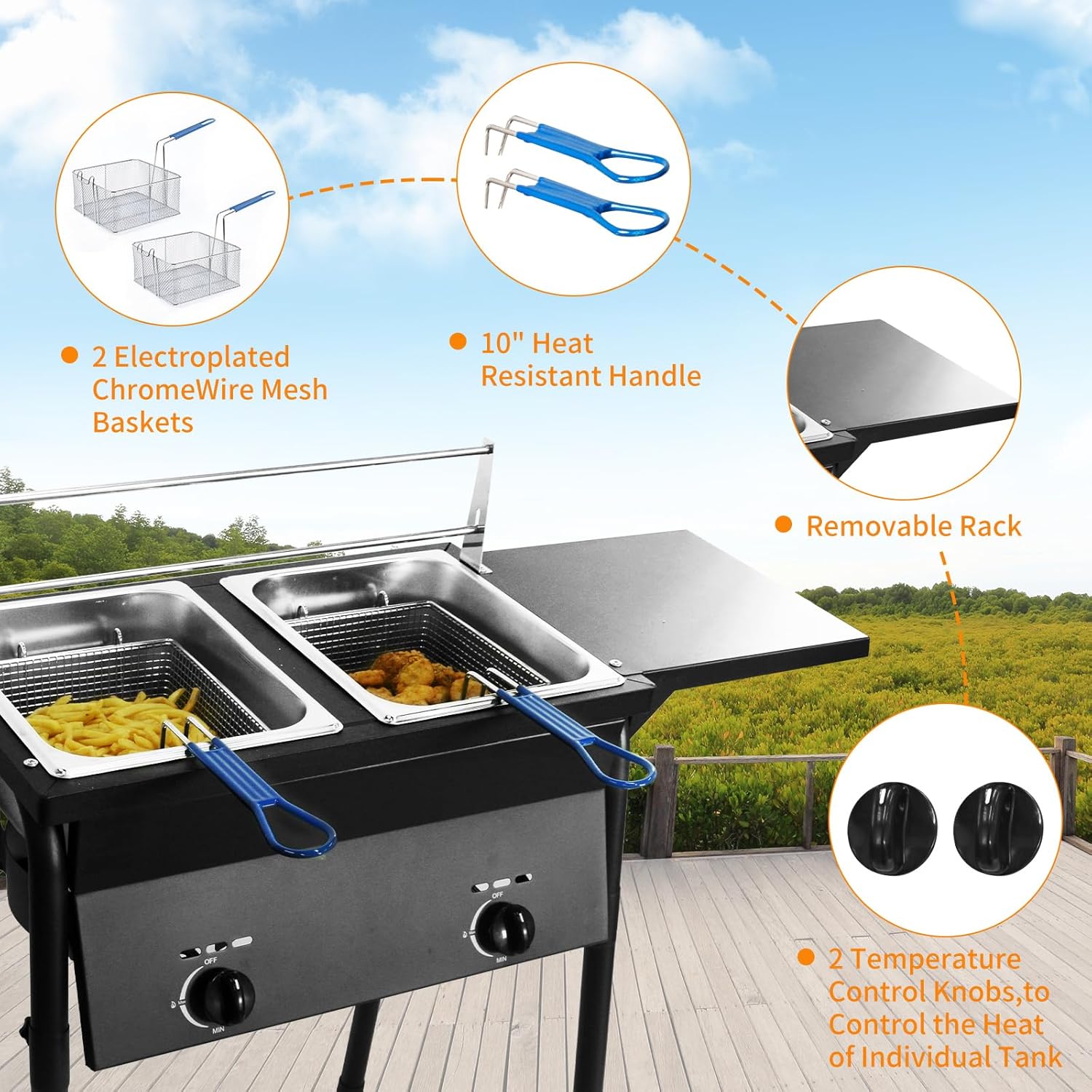 | Included Components | REMOVABLE STAINLESS STEEL RACK, STRONG BASKET HANGER, TWO CHROME PLATED WIRE MESH BASKE, TWO FRYING TANKS, TWO INDIVIDUAL TEMPERATURE CONTROL,KNOB |