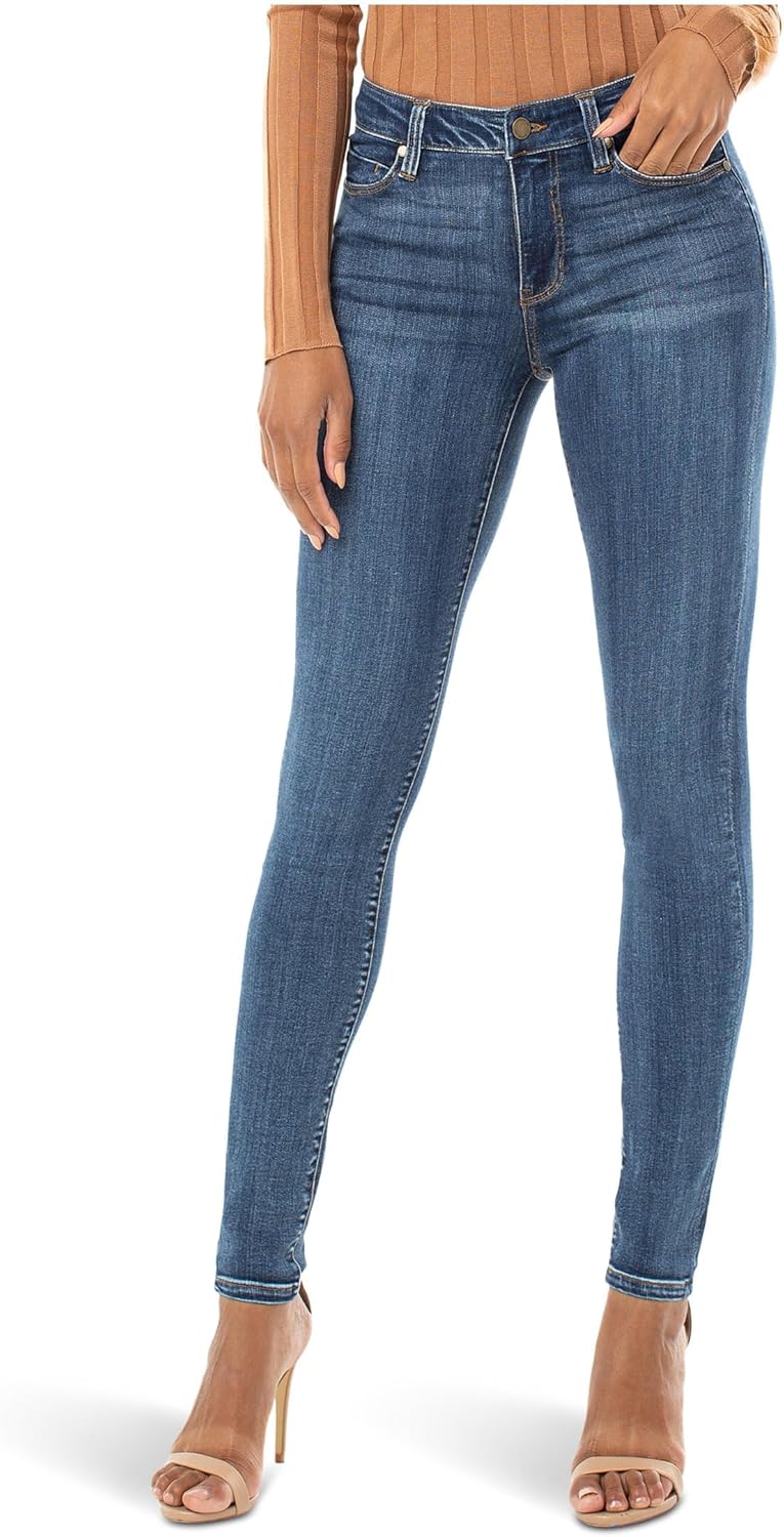 From our Love by Liverpool collection, this silky soft mid-rise skinny is shown here in Victory. Amazing quality made with modal and rayon yarns for a luxurious hand-feel. Super comfortable with amazing stretch and excellent recovery. This modern eco denim was designed using new laser techniques and processes that gives the "Liverpool Look" and uses a fraction of our natural resources. This is measured using a certified system that assesses the environmental impact of the garment finishing processes.
