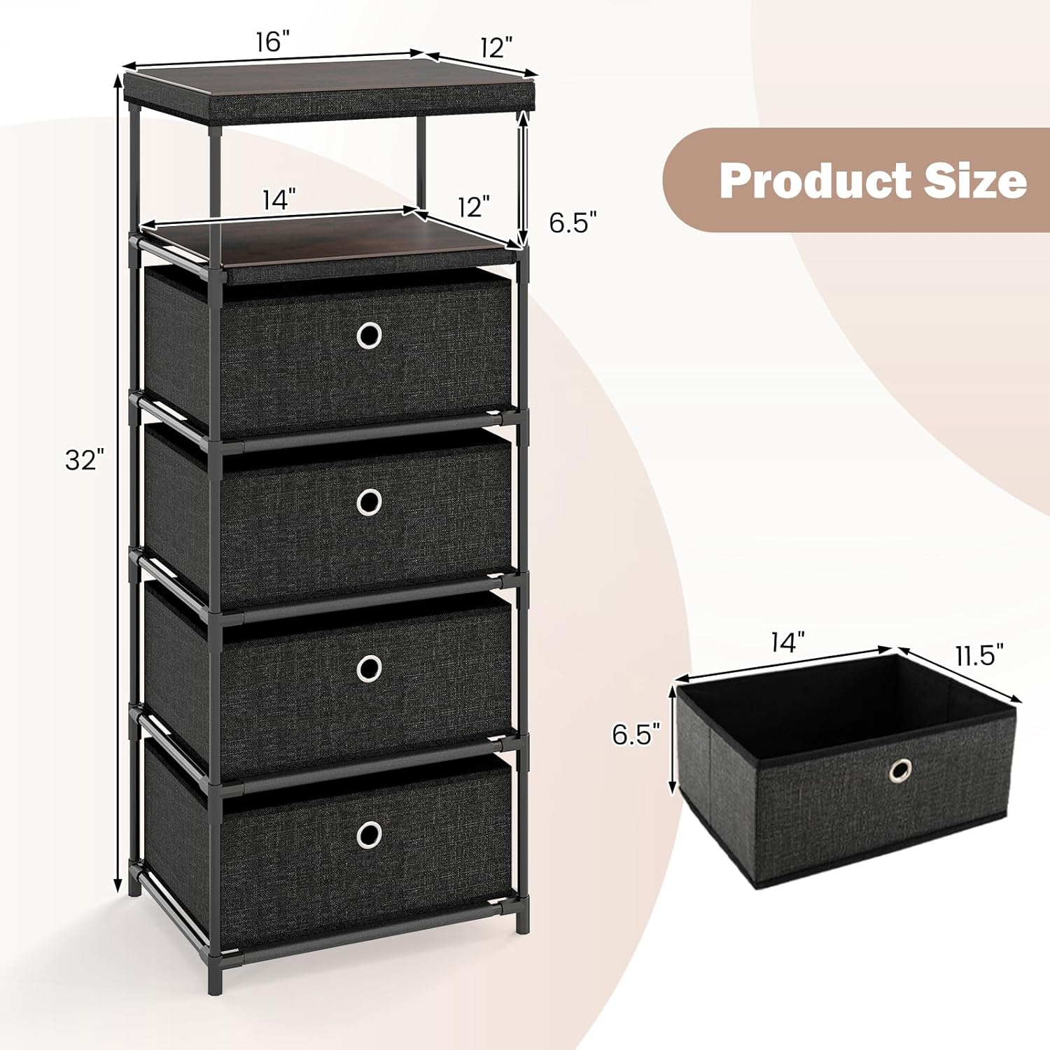| Size | 12"D x 16"W x 39"H (4 Drawers) |