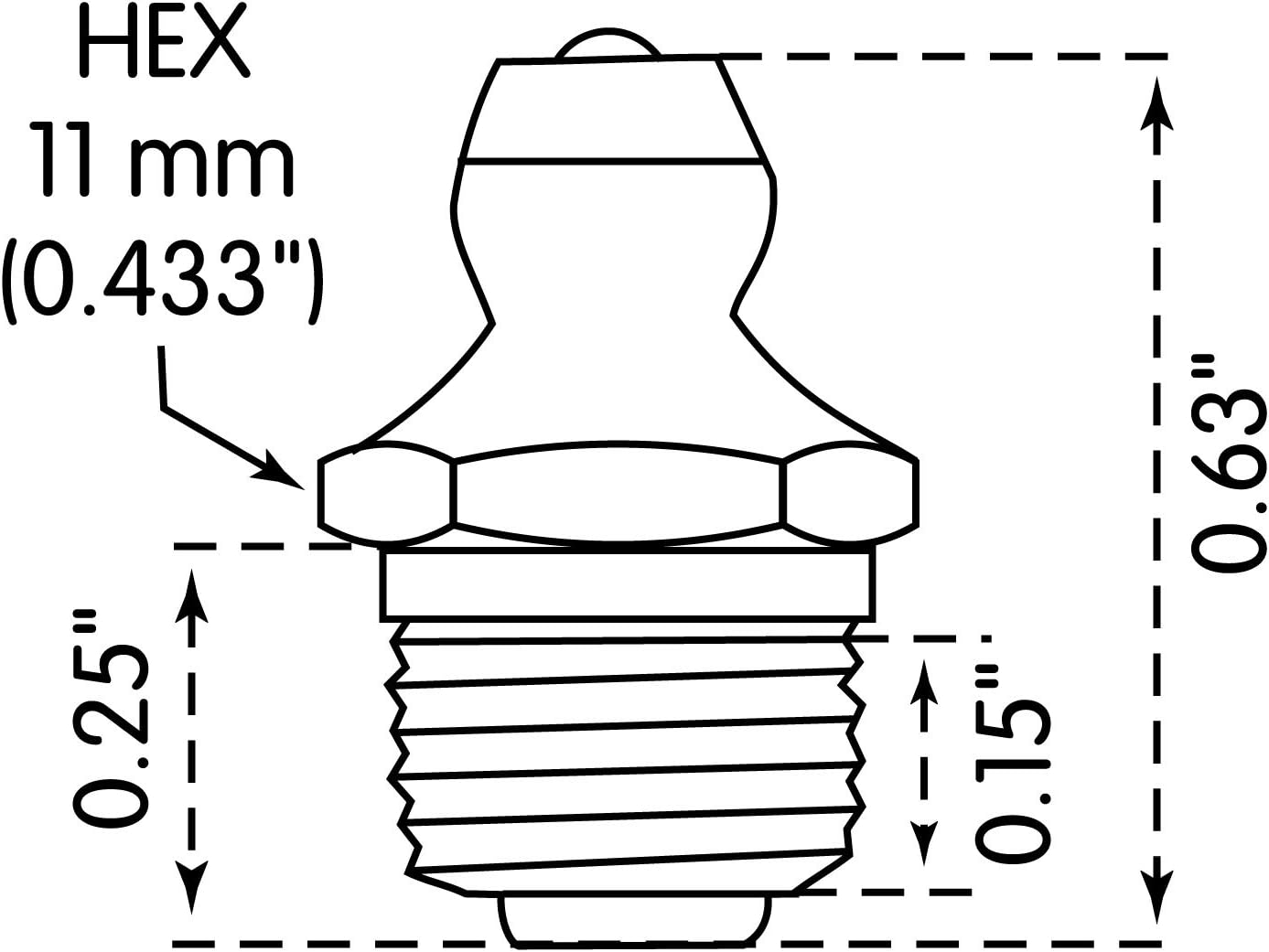 This is a 10 millimeter x 1 millimeter, taper metric thread, straight, 0. 63 inches grease fitting. These fittings have a ball check in the head to prevent dirt and grit from getting into the fitting, heavier wall thickness for extra strength, are zinc plated with a yellow passivated finish for maximum protection against corrosion, and have a stress relieved and tempered carbon steel spring. Every fitting is individually inspected and batch tested to 5, 000 PSI and are designed to meet the demanding requirements of most automotive, agricultural, industrial, marine, truck, federal, and construction equipment needs. Lumax is a manufacturer of lubrication and fluid management products. Our products, including grease guns, manual and electric pumps, funnels, drains, grease fittings, filter wrenches, and accessories, are built to the highest standards and incorporate many proprietary features. Lumax's mission is to provide professionals and consumers with innovative and high-quality products to get the job done right. Product development at Lumax goes beyond the physical product, to a deeper understanding of the end-users' needs. Engineered with the "user-in-mind, " Lumax products are built to the highest standards and incorporate many unique features that make work easier, faster and cost-effective. We have a passion for the design process. We listen to our customers and their ever-expanding requirements. Our unique products lead the field in design, quality, and performance.