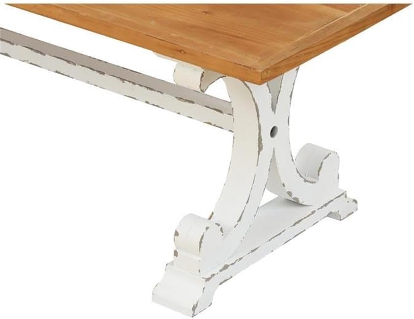 Bring a farmhouse feel into your living space with this entry and bedroom bench supported by a pedestal base with classic baluster style. This bench is the solution to multiple design choices. It is an attractive focal point in the living room and serves as a place for your picture frames, vases, bowls, and table lamps. It can also be the center coffee table in your living room - great for entertaining, offering space for to set out bowls of snacks and drinks for your guests. You can also use it in your hall or entryway as a bench for a place to put your laptop bags or backpacks. Our table is made of solid and manufactured wood, and features a natural wood finish top with visible wood grain complemented by a distressed white finish base for a complete rustic design. Whether its your living room, bedroom, office or study, this coffee table and bench can meet a multitude of needs, and has a long service life. Set up in front of your living room sofa for a place to put your drinks, remotes, books, and more. This rustic style wood coffee table ties your room together and gives you room to spread out.