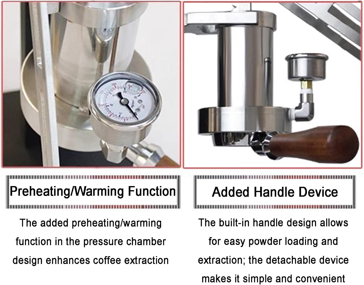 Specifications: Name: Hand Pressed Espresso Coffee Machine Material: Stainless Steel, Aluminum Alloy Size: 25*16*44.5 cm Weight: 9 kg. Packing Includes: 1*Manual Espresso Maker