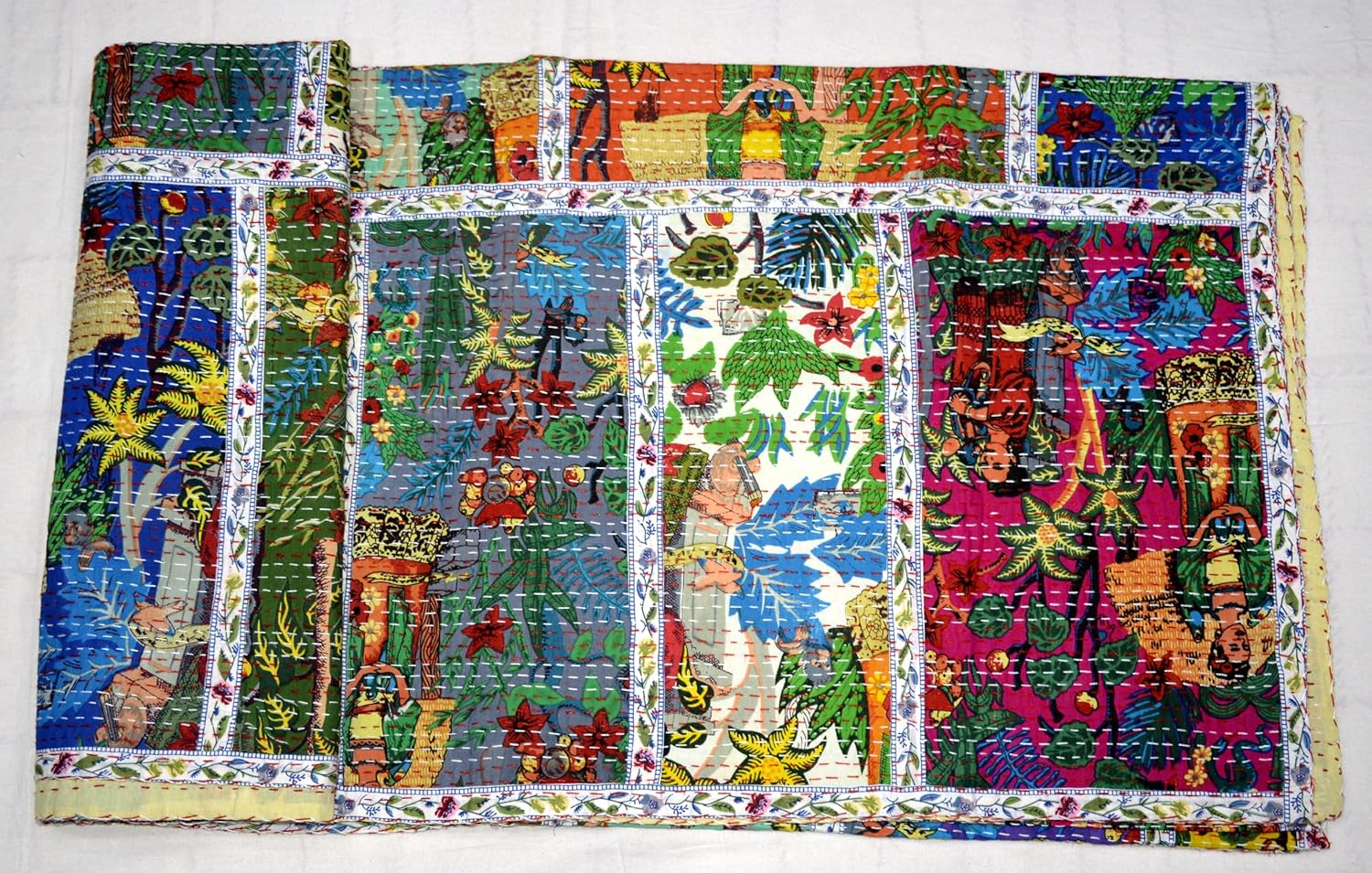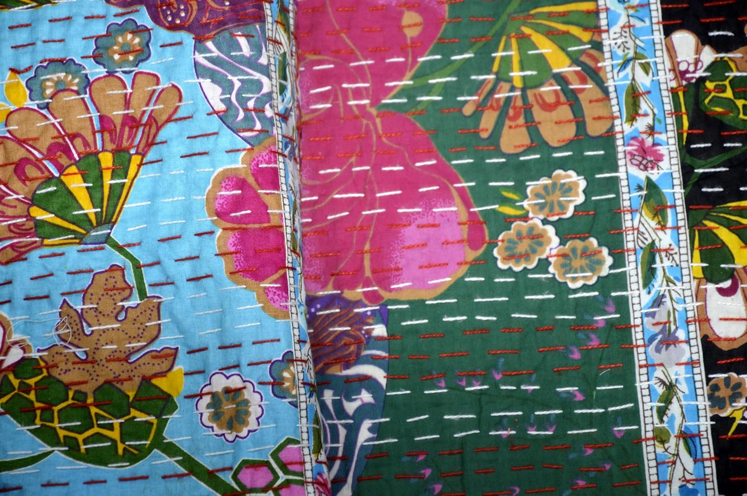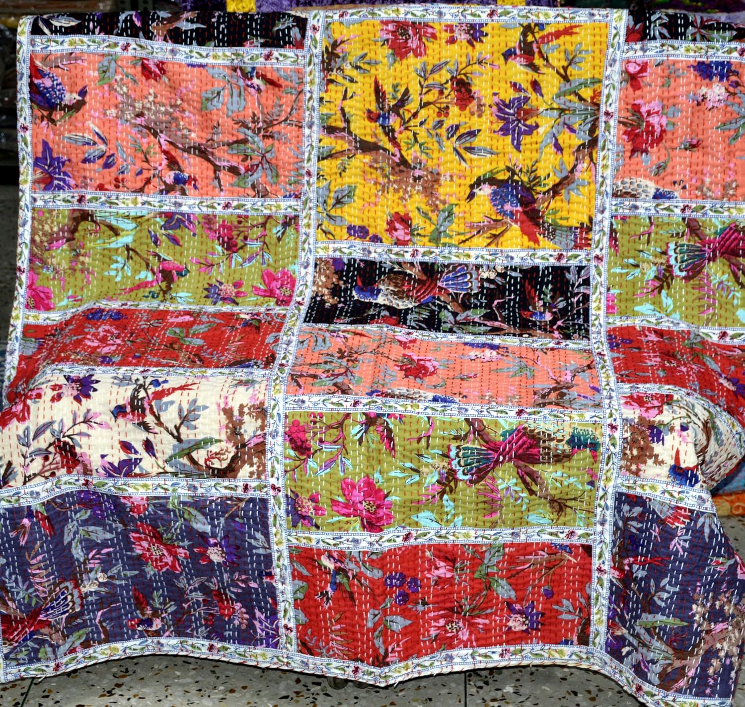 This Indian vintage kantha cotton quilt is completely hand stitched by Women artisan in Rajasthan, India. Kantha is a uniquely quilted texture made from layering colorful vintage. These quilts are famed and admired due to their Kantha work. Add classic style and elegance to your bedroom with a solid quilt set that comes in two patterns and an array of colors. They have different beautiful warm and charming colors, designs and patterns on either side which gives a distinct look. A beautiful creation to give your home a traditional yet authentic colorful. This mandala coverlet is reversible with contrasting vibrant patterns and colors. This kantha quilts can be used for bed covering to wall decorations, bedspread, blanket, bed-cover, quilt, throw or wall hanging. Quilts are made with quality fabric and are reversible which can be used from both sides.