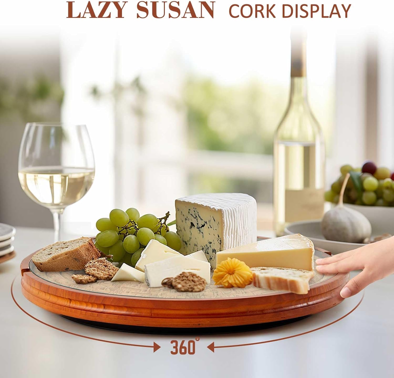 Features: Practical turntable: This DIY cork holder is the nice tray for storing condiments, table decorations, wine bottles and glasses, or just displaying your wine corks. It is a practical way to keep your corks in order. Addition to your home decoration: This wine cork collector turntable effortlessly enhances your kitchen or bar decor while keeping your memories intact. The authentic wood color beautifully compliments given space, adding a touch of elegance and sophistication to your surroundings. Specifications: Material: wood, glass Color: wood color Size: Diameter of wine cork collector turntable: approx. 19 inches/ 48.26 cm Height of wine cork collector turntable: approx. 2 inches/ 5 cm Package includes: 1 x Wine cork collector turntable Notes: Manual measurement, please allow slight errors on size. The color may exist a slight difference due to different screen displays.