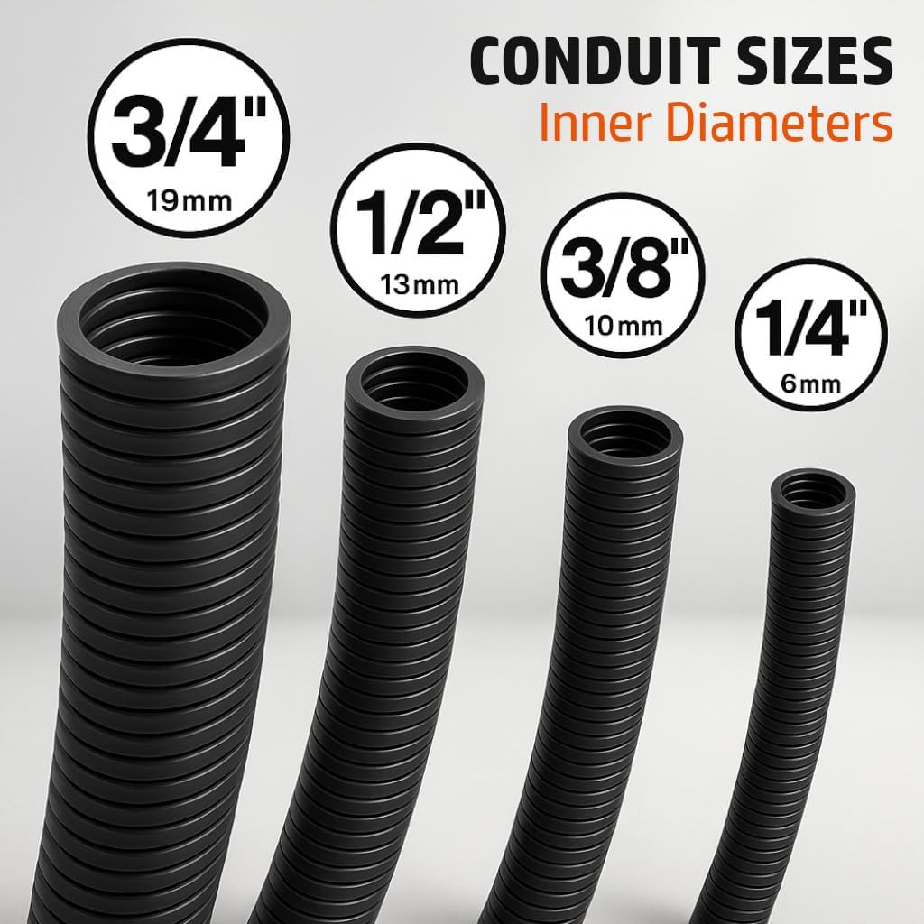 High-Quality cable conduit that offers long-lasting protection and a professional look to your wires and cables. Widely used in vehicles, home offices, small equipment, and industries related to manufacturing, hydraulics and railway. Simply cut to the desired length and start using. Offers protection against outdoor elements such as sun, wind, and water. Scratch and chew resistance is also ideal for pet owners. With MGI corrugated cable conduit, you get reliable wire management, organization, and protection all at a great cost.SpecificationsTemperature Rating: 125°C (257°F)