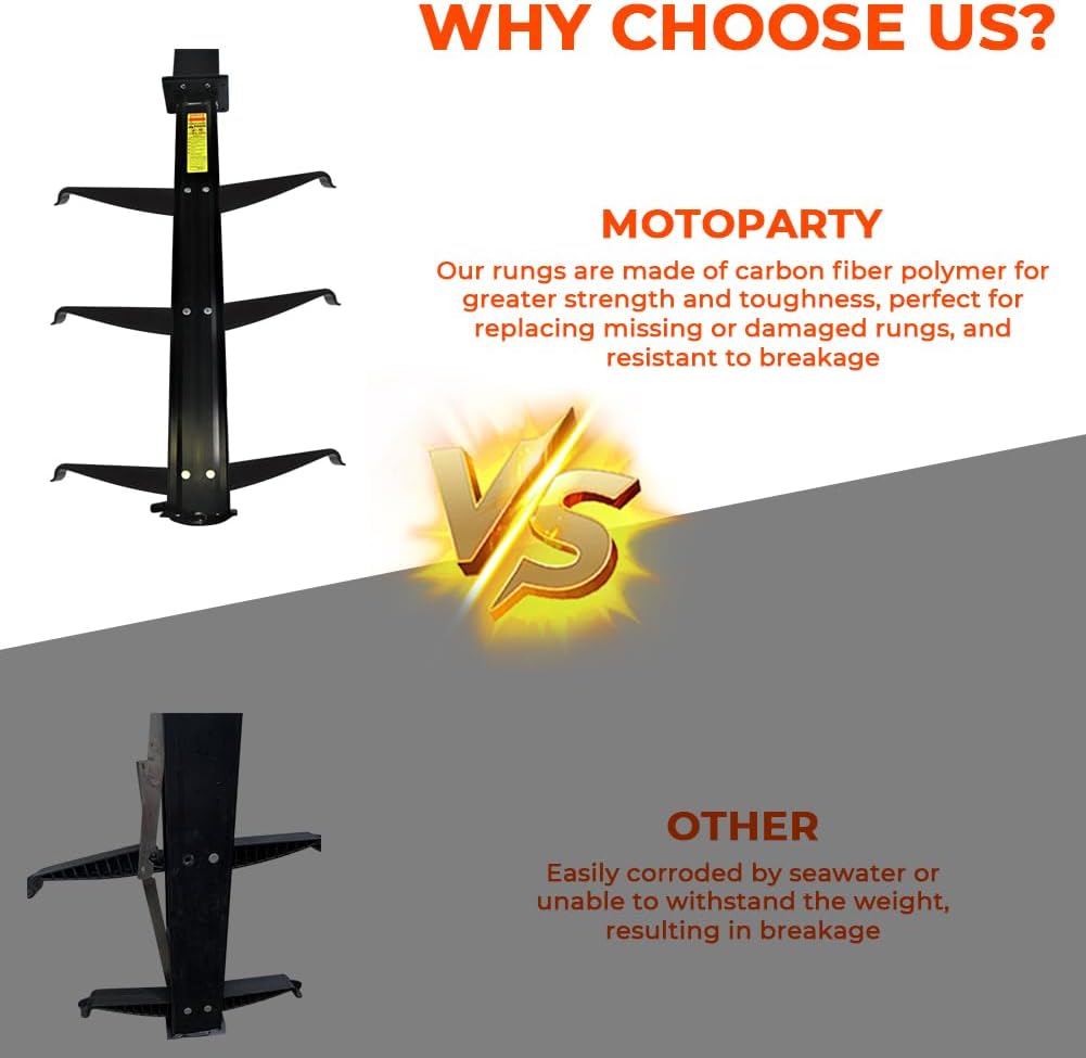 The replacement step rung fits for Garelick Eez-In Boarding / Swim / Dive / LadderOur rungs are made of carbon fiber polymer, which is strong and resistant to corrosion damagePerfect replacement for missing or damaged rungsOur rungs have higher strength and toughness and are less prone to rung breakageStrong corrosion resistance to withstand harsh seawater erosion, extending the overall service life of the ladder
