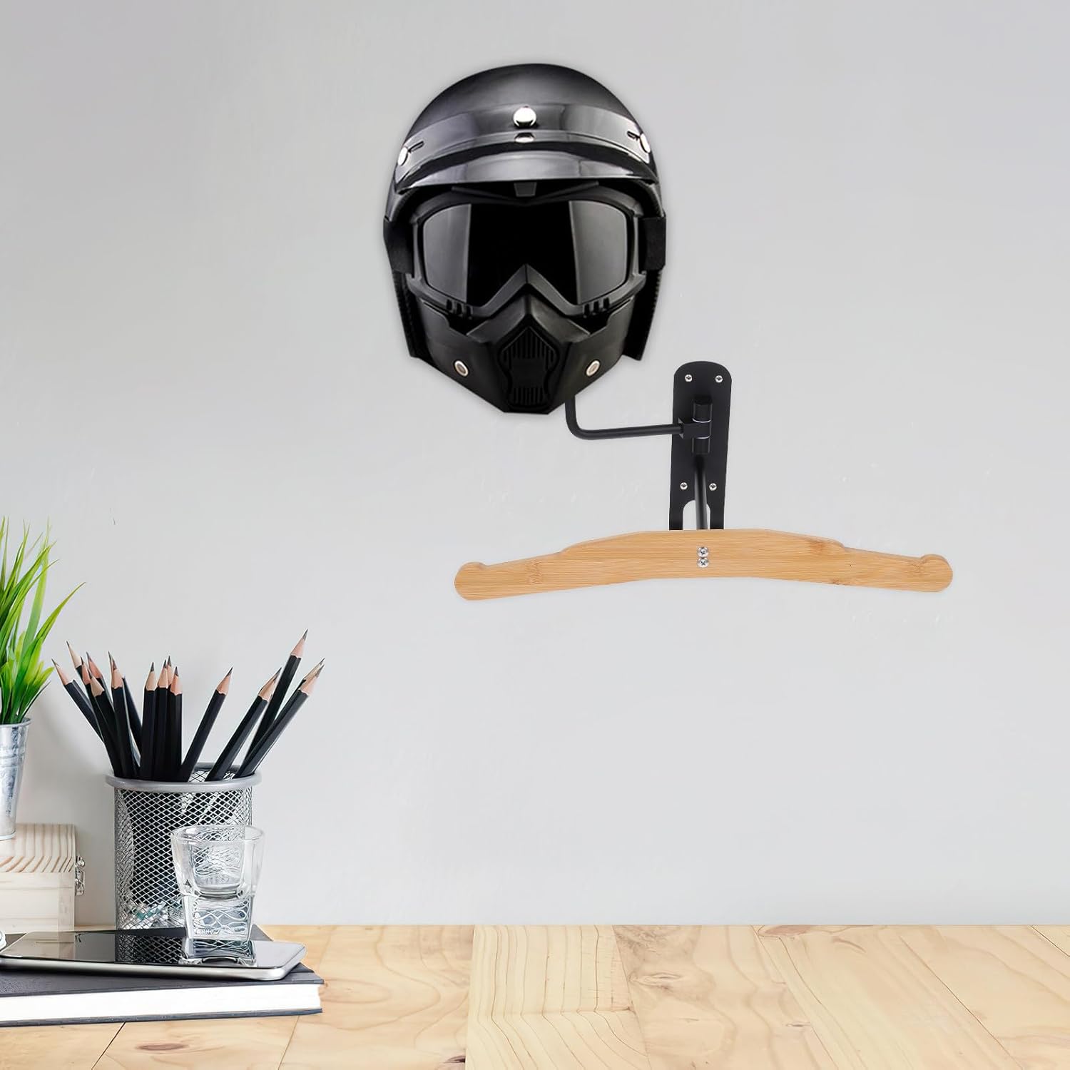 Package Include 1 x helmet rack Features -Elegant and modern: simple yet stylish design fits well with any decor, from modern to classic, enhancing the aesthetic appeal of your space hanger -Material:Wood, Iron -Size:42.00X35.00X22.00cm/16.51X13.76X8.65in -Product Info:Helmet rack - storage: versatile rack can hold helmets, jackets, and other gear, providing a centralized storage solution for all your motorcycle accessories motorcycle accessories for women -Simple solution: With Motorcycle Helmet Wall Mount, you can store motorcycle open face helmets, full face helmets, bicycle helmets, safety helmets, football helmets and baseball helmets bag hanger for wall -Maximized space: wallmounted design optimizes your room's layout, making it for areas with space and keeping your floor clear percheros para colgar bolsas de mujer -Strong and sturdy: made from materials, this rack can support multiple items, ensuring durability and longterm use -Color:MultiGoods Informationcoat rack umbrella stand Organize your motorcycle gear with this wall-mounted helmet storage rack.purse hanger The installation process is easy with the provided mounting hardware, making it a practical addition to any space.wall mount coat rack Designed to hold your helmet securely, it also features hooks for hanging jackets, gloves, and other accessories.front motorcycle stand for garages, entryways, or mudrooms, this rack ensures your gear is always within reach and neatly displayed