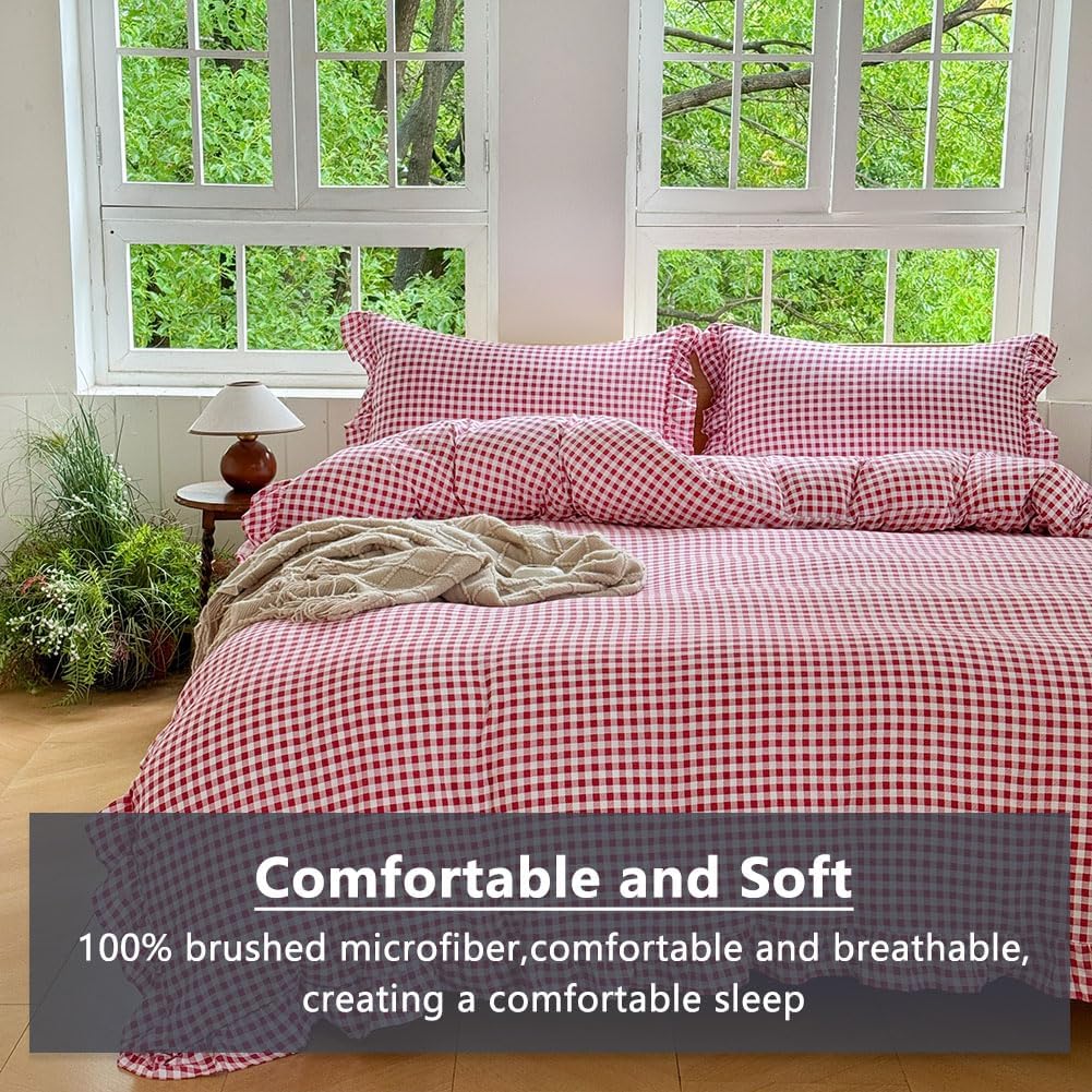 | Included Components | 1* Queen Size Gingham Ruffle Duvet Cover 90"x90", 2* Gingham Ruffle Pillowcases 20"x26" |