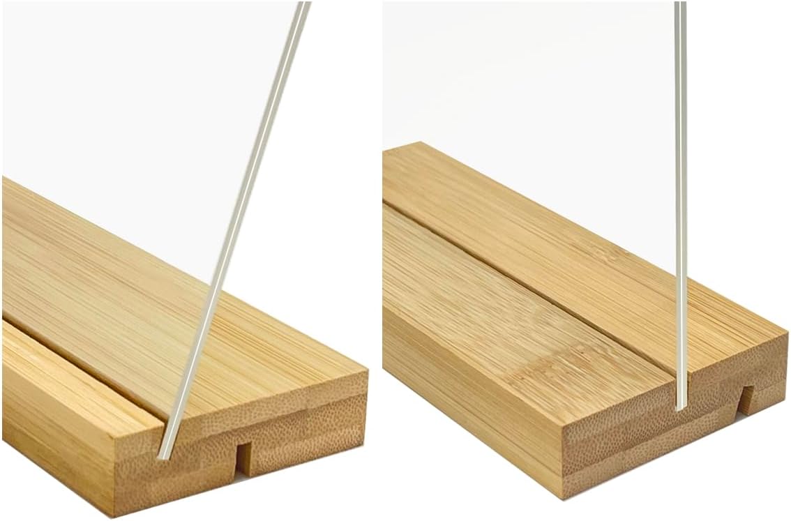 Elevate your displays with this versatile acrylic sign holder set, featuring three sizes to suit various presentation needs. The collection includes 8.5x11 inch, 5x7 inch, and 4x6 inch frames, each crafted with crystal-clear acrylic and supported by an elegant wooden base. Perfect for retail environments, offices, or tabletop displays, these frames can be positioned vertically or at a slight slant for optimal viewing. The sturdy construction combines a sleek modern aesthetic with practical functionality, making them ideal for menus, promotional materials, photographs, or important notices. The wooden base provides stable support while adding a touch of natural warmth to the contemporary design. These frames offer professional-grade quality with their glossy finish and precise engineering, ensuring your displayed materials remain secure and prominently visible. Each frame features clean lines and excellent clarity, making your content the focal point while complementing any decor style.
