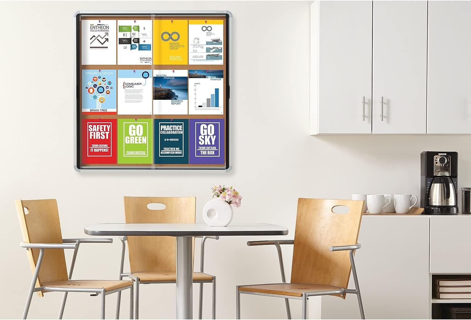 Cork bulletin boards are a standard for display, but when you have a busy or high traffic space an enclosed cork bulletin board is a better choice. It is easy to pin items into the natural cork surface, and because they are protected behind a safety glass door it is very unlikely that they will fall or get damaged. Two sliding doors move over each other so that you can easily change out your signage at any time. While on display, the door can be locked for maximum security and protection. Two keys are included. The display space measures 36"W x 37"H and holds up to 12 sheets of letter size paper. Overall enclosed board dimensions are 38"W x 39"H. Wall mounting hardware is included. 15 year warranty.