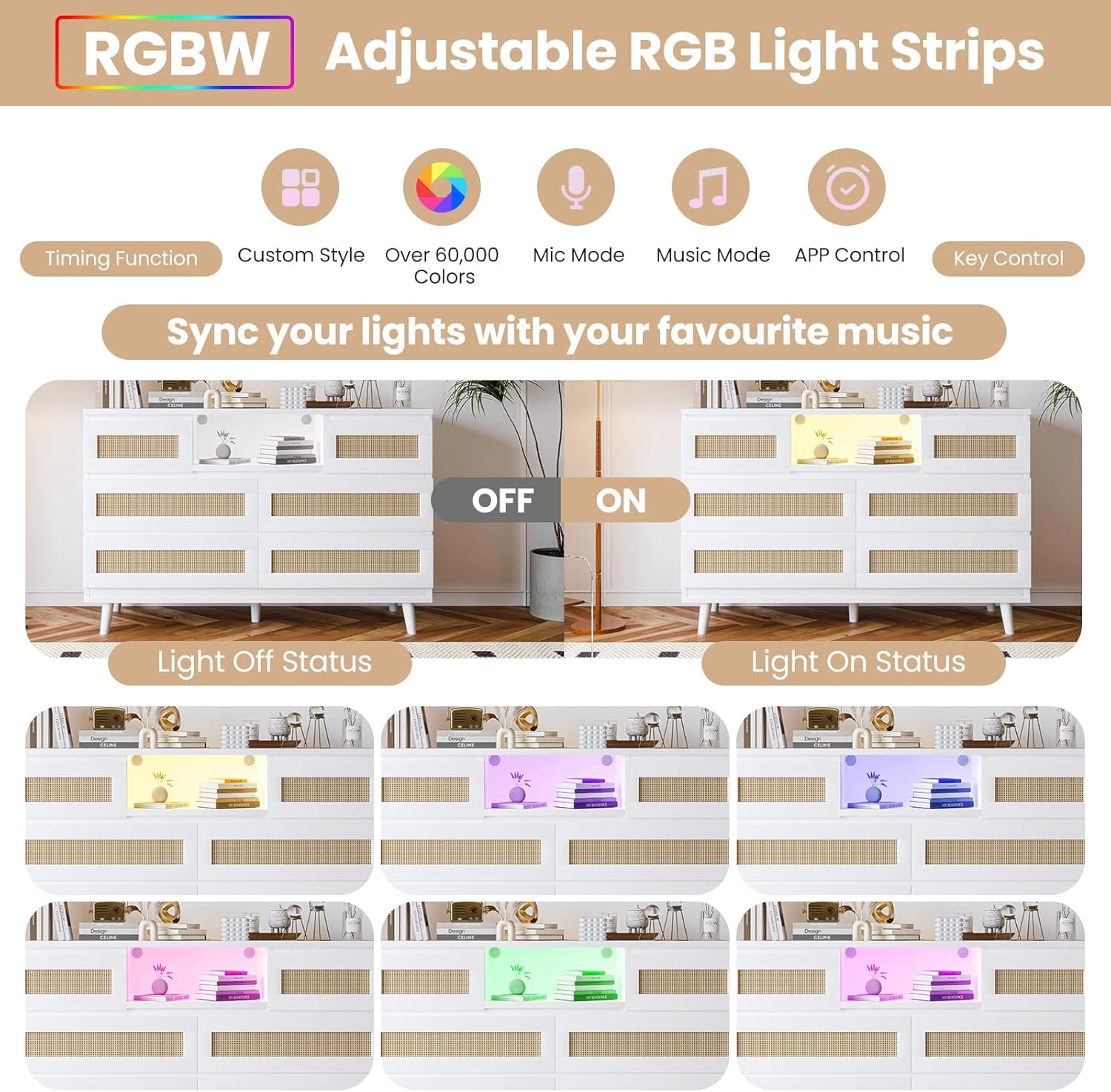 | Included Components | dresser, user manual, assembly tools, power outlet, LED lights |