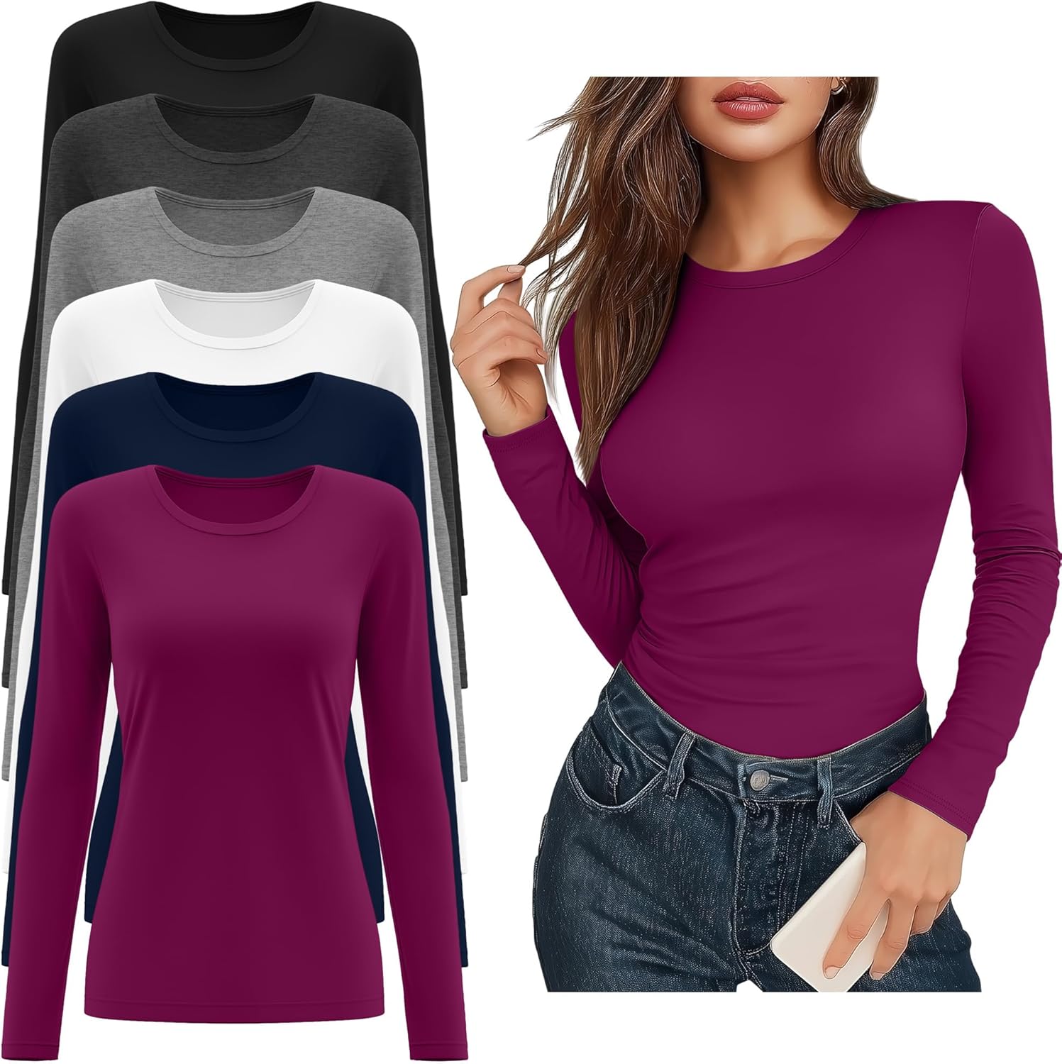 Features: Seasonless Wardrobe Essential: Wear these long sleeve basic tee shirts year-round. Lightweight for spring/summer breezes and ideal as fall layering tops for women under jackets when temperatures drop. Trendy Silhouette: Cropped and regular style elevates these womens slim fit long sleeve shirts. The slim fit tops is ideal for high-waisted bottoms, offering a contemporary, flattering fit. Specifications: Material: 65% Cotton, 30% Polyester, 5% Spandex Size: from S to 2XL Package includes: 6 x Long sleeve basic tee shirts Notes: Manual measurement, please allow slight errors on size. The color may exist a slight difference due to different screen displays