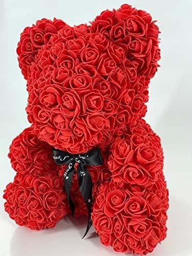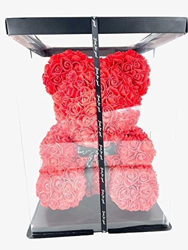 About this item The gift box seals the deal and makes this gift even MORE perfect. The crystal clear, window-like box holds the Hugs bear in a very presentable way for that special someone. Hugs handmade, life-like, artificial flowers are destined to amaze your significant other. Our premium rose bear is great for Girlfriends, Anniversaries, Birthdays, Weddings, Valentine's day, and gender reveals. Most sellers have the 10 inch bear, Hugs has the big 16 inch rose bear also. Hugs Rose Bears will always be the center of attention and the only thing everyone will be talking about. It's unique, it's beautiful, and it will last forever.