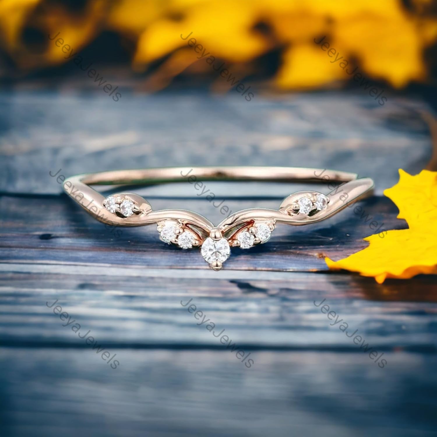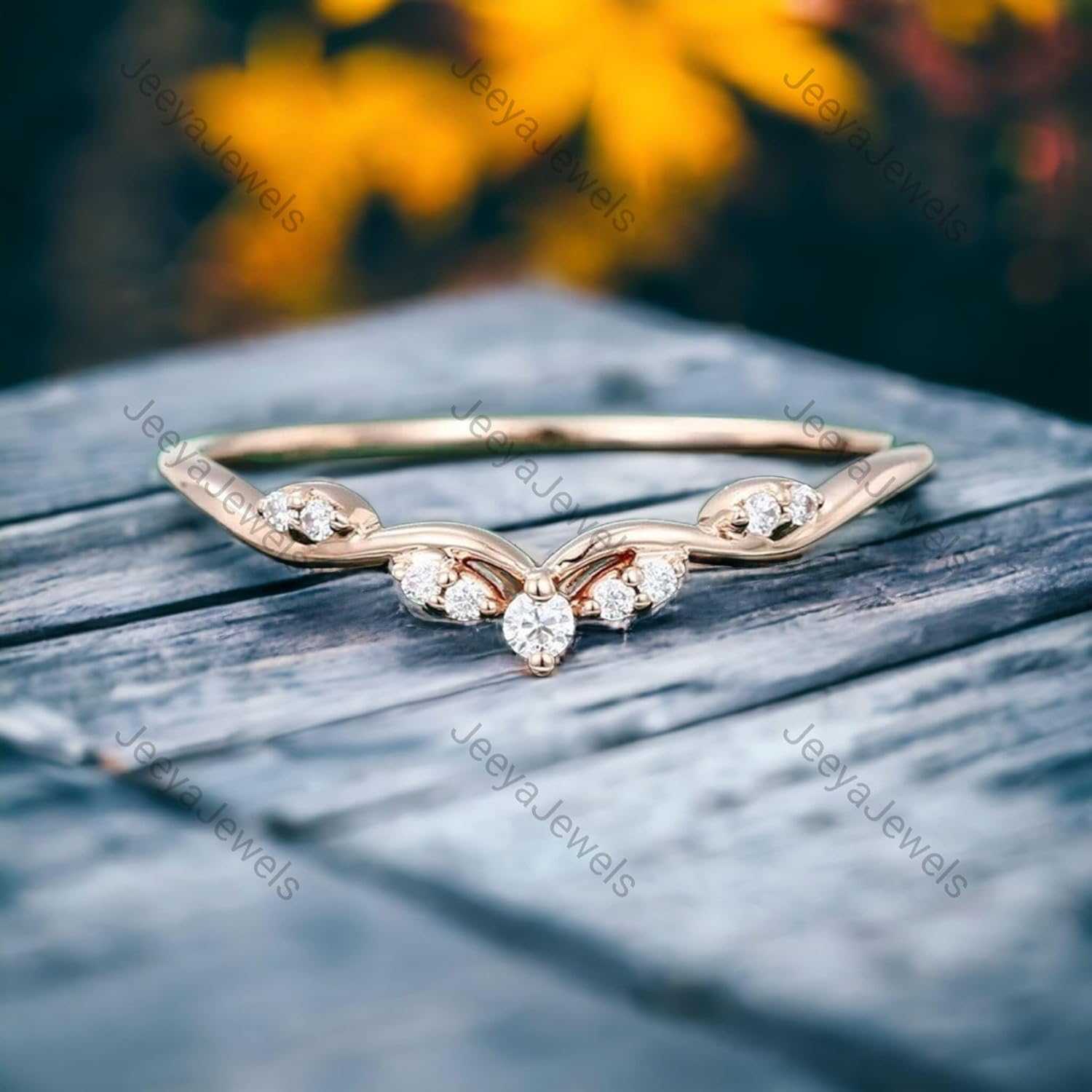 Round Shape Moissanite Curved Wedding Ring Art Deco Matching Aniversary Ring Personalized Rose Gold Valentine Day Gift April Birthstone Birthday Gift For Her Discription :- Main Stone - Moissanite Stone Color - Colorless Stone Shape - Round Stone Size - 2 MM