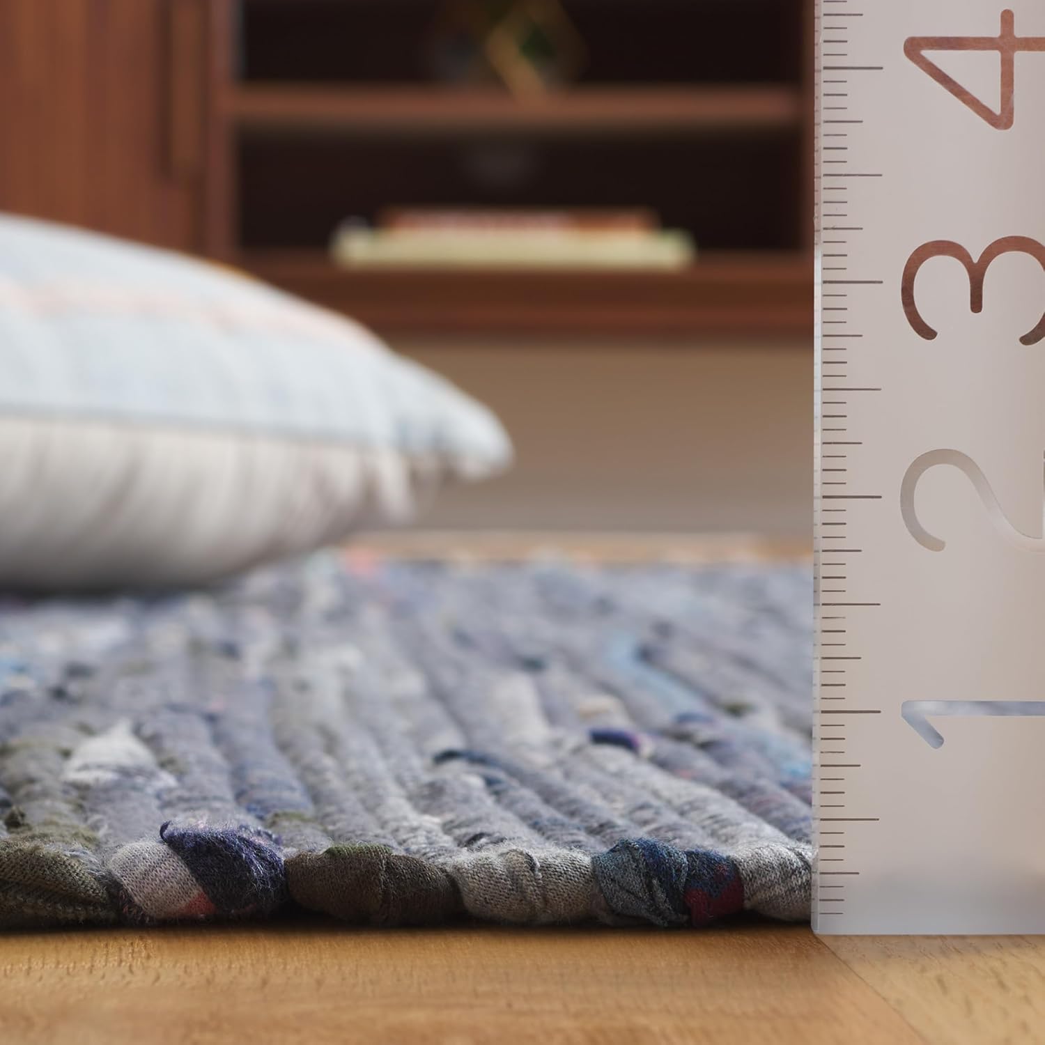 The simple charm of American textile art beams from this rug from Safavieh's Rag Rug Collection. Its chic, contemporary styling makes it a unique floor covering ideal for casual rooms. Expertly handwoven by village artisans in India, this textural rag rug is truly a one of a kind piece.Accentuated with vibrant trendy colors, this stylish ink blue colored cotton rug adds an artistic touch to existing decor. Its flat weave construction allows for seamless placement in entryways or under tables. This rug offers a way to effortlessly dress up casual spaces including mudrooms, playrooms, family rooms, or arts and crafts areas. Style: CasualPrimary Color: Ink Primary Material: Cotton Country of Origin: India Rug Dimensions: 4' x 6'