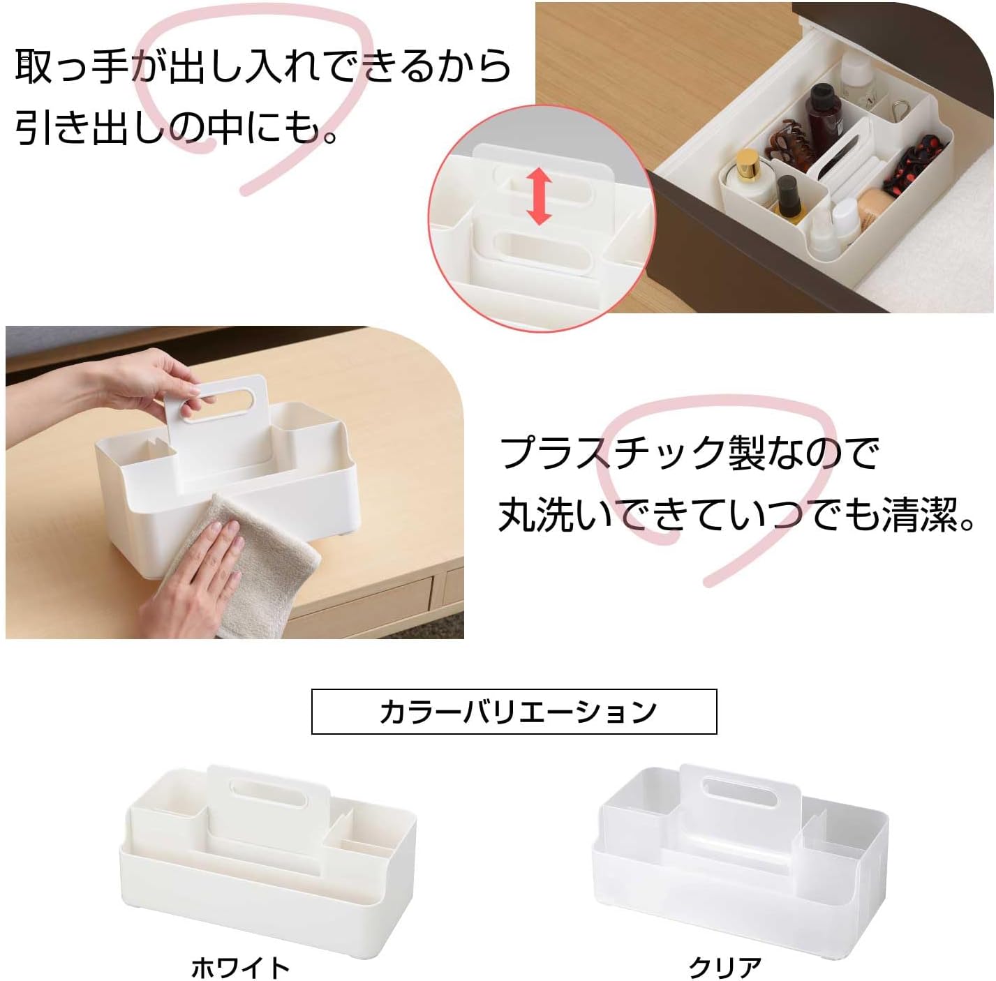 Easy to carry all your miscellaneous goods together. Desktop Storage Box with Handle ■ Comfortable rounded handle ■ Easy to pack and carry around. ■ Small items are easy to see and take out ■ Perfect for small items around the living room. ■ Holds vertical remote controls, stationery, and small cosmetics ■ Carry all items you use together.