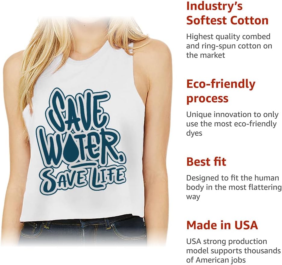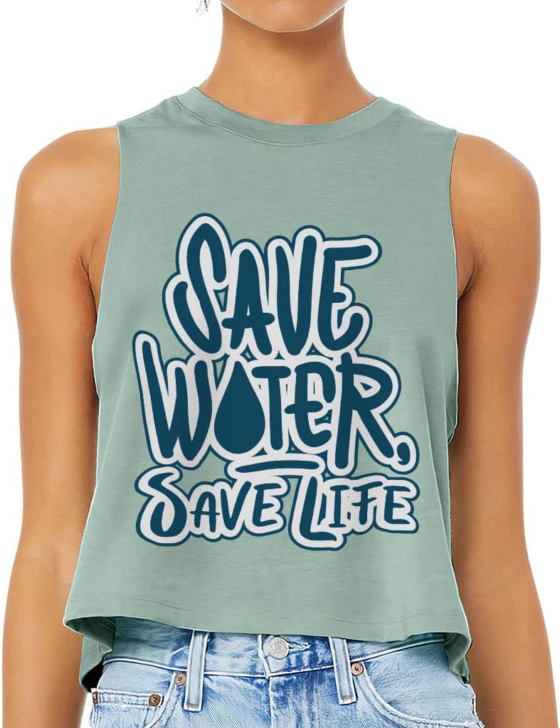 Cute and flattering Save Water Save Life Racerback Cropped Tank is suitable for most indoor or outdoor activities, such as gym, yoga, running, hiking, beach or relaxing around the house. Pair Unique Women's Tank with your favorite sports bras, especially strappy ones, and high-waisted leggings, then you will enjoy cool and comfortable exercise throughout the summer.