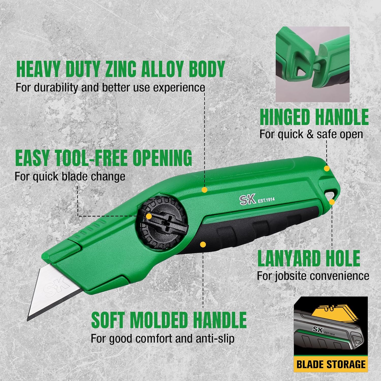 SK Fixed Blade Utility Knife & 100-Pack Utility Knife Blades, SK2M Blades, Heavy Duty Zinc Alloy Box Cutter