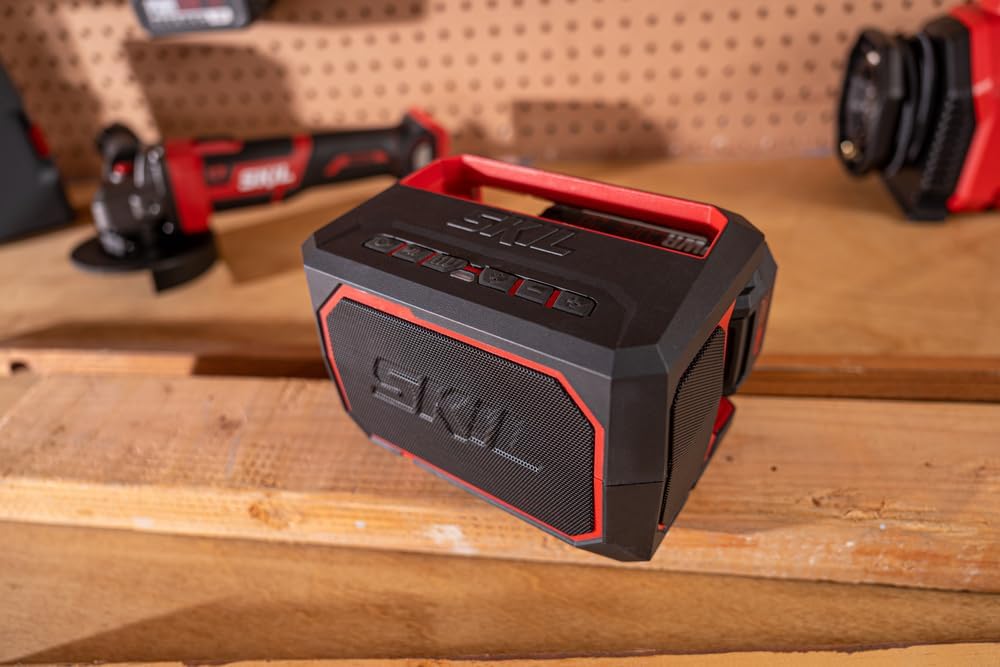 Fill your workspace—or a tailgate—with quality sound from the SKIL PWR Core 20 portable speaker. Connect your phone wirelessly with Bluetooth, and use the integrated USB to charge other devices. Control the Bass as well as Play/Pause from the speaker. This Bluetooth speaker uses the same innovative battery technology as your SKIL tools.