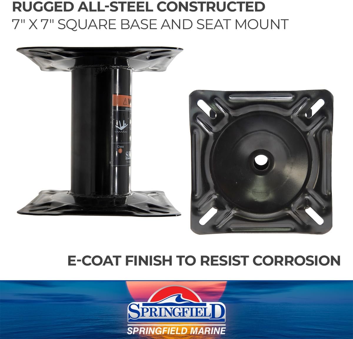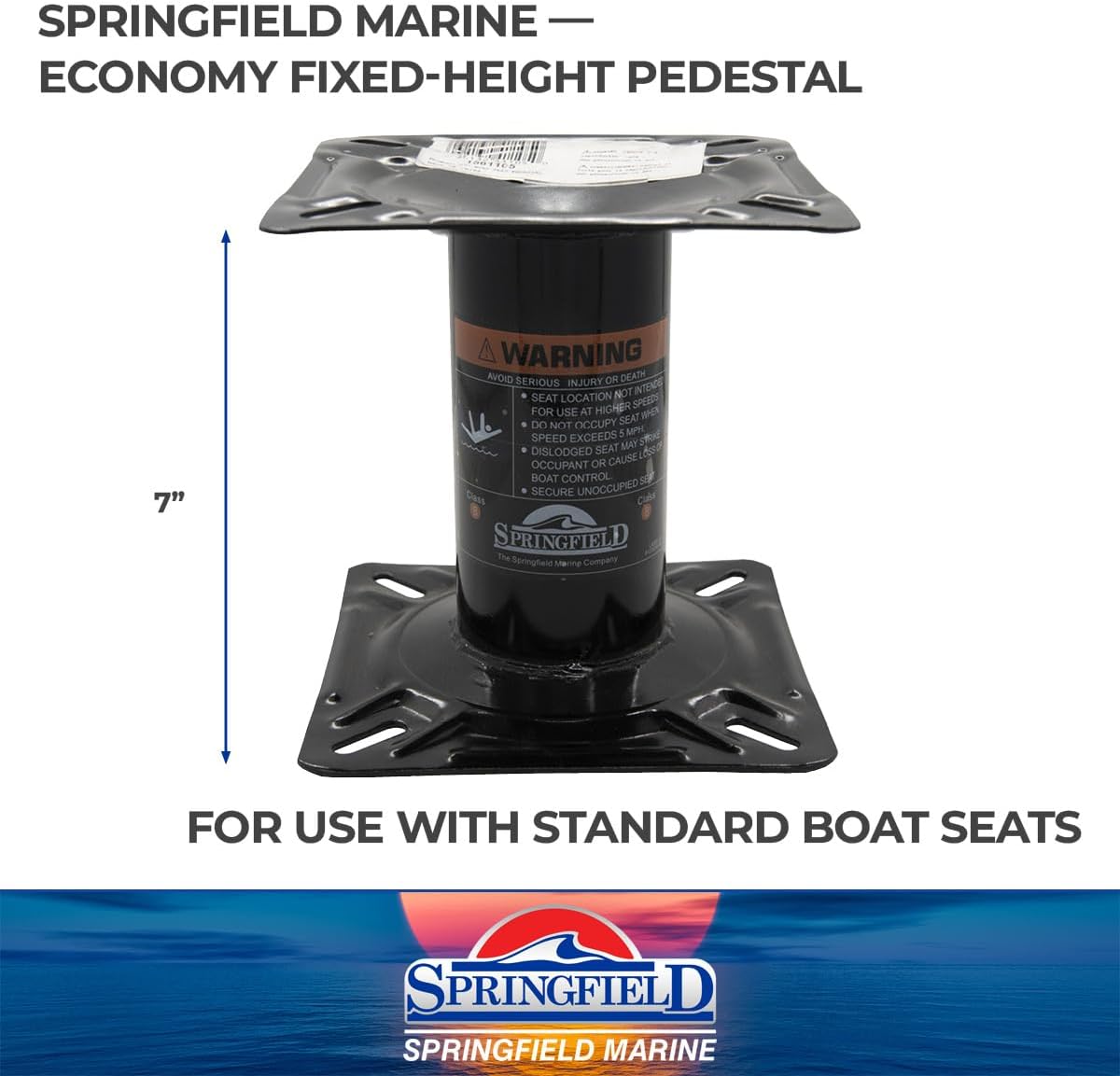 Springfield Marine 1561105 Economy Pedestal - 7". Economy Pedestal This 7" rugged pedestal is the perfect choice for car toppers and any portable boats including duck boats. Standard seat mount.