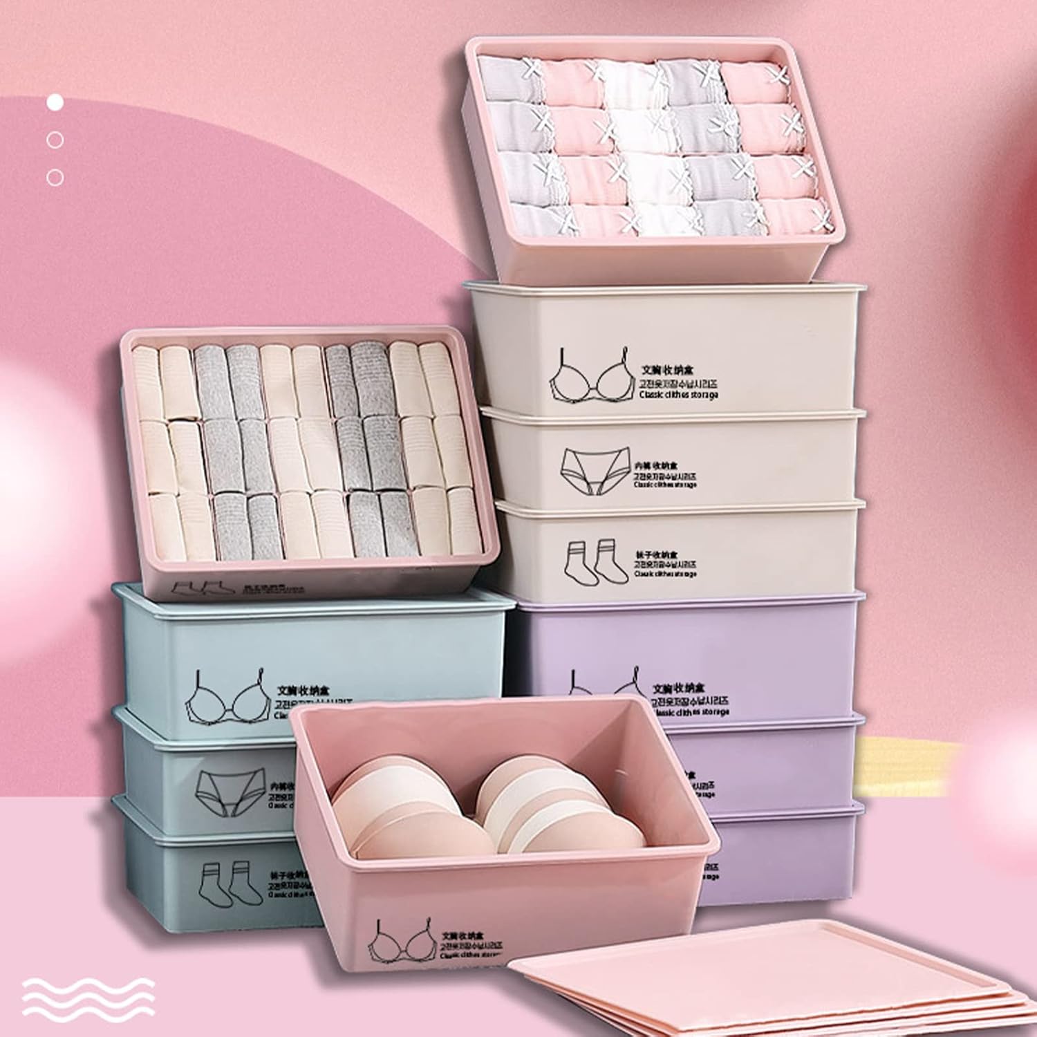 ✨Clean and tidy!! Space saving!! With lid!! 3PCS Individual storage boxes allow you to organize your clothes by size or type, and they are compatible with any size drawers, let your drawers look clean and neat. Comes with a lid to further keep clothes clean. Not just for clothing, you can also use them for random storage.Super easy to re-use and clean!High-quality plastic material, hygienic and clean, effectively reduce odor and keep clothes fresh.The clothes drawer organizers are perfect for bedroom, dresser, bathroom, craft room, nursery drawers, reorganize your clothing belongings, such as shirts, socks, intimate wear, towels, tie, belt, bras, underwear, and other things, making it easier to select clothes.✨Product Details:Weight:500(g)/1.1(lbs)Material:PP PlasticsColor:PinkWashing method:rinse or wipeSize: Please refer to the size chart, 1cm≈0.39inch1 compartments:31.4*24.4*8.5cm/12.4*9*9.6*3.3in10 compartments:31.4*24.4*8.5cm/12.4*9*9.6*3.3in15 compartments:31.4*24.4*8.5cm/12.4*9*9.6*3.3in✨Package Including:3*Closet organizer,3*lid✨Note:The products are all manually measured, there are small gaps, please refer to the actual product.