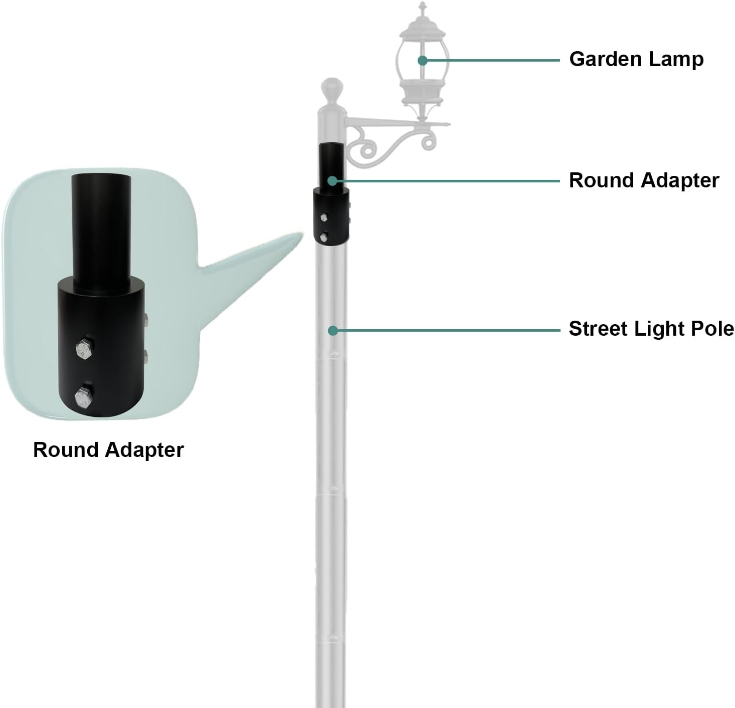 Street Light Split Pole 13ft and Slip Fitter Light Pole Adapter - for 3 inch Round Pole, 2 3/8 inch Round Tenon Adapter