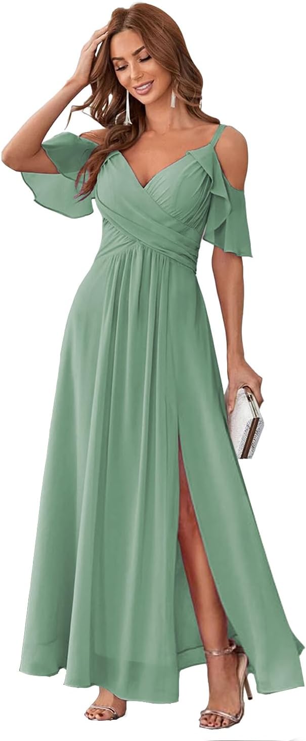 | Fabric Type | Material: V-Neck Cold Chiffon Bridesmaid Dress, lightweight fabric perfect for bridesmaids or prom |