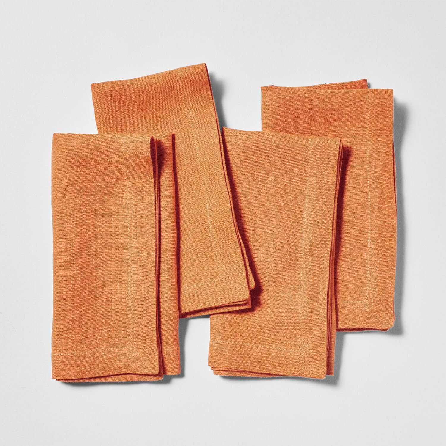 We’ve relaunched our 100% linen collection with a wide range of colors and heavier weight for greater durability and resistance to wrinkles. A classic and sophisticated addition to any kitchen, linen possesses an elegant simplicity that lends itself to both formal entertaining and everyday dining. Our exclusive linen napkins are pre-shrunk and hand-washed for a feather-soft texture and a relaxed drape. Set includes four napkins.