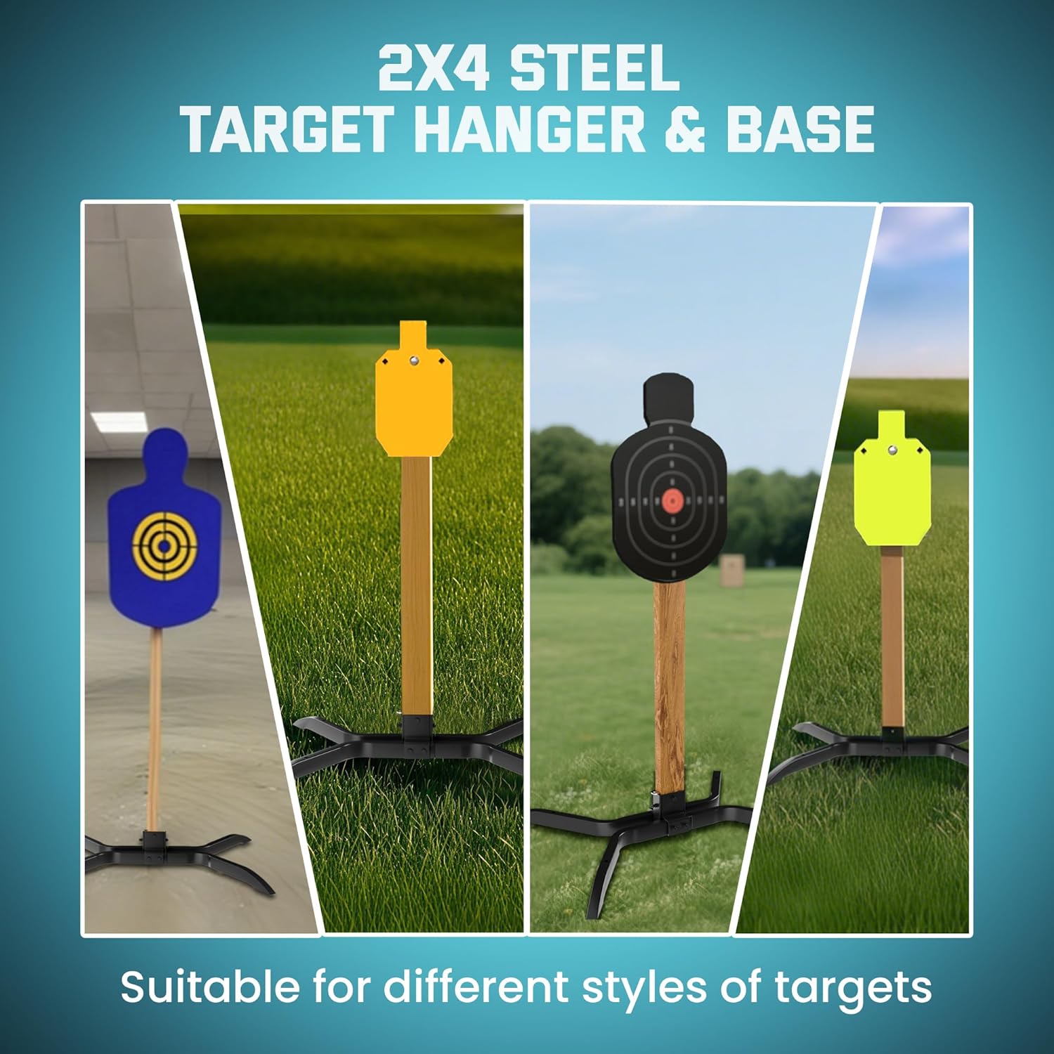 Youyikoo 2x4 Target Stand System 1. Save Money & Build Skills: Tired of replacing flimsy shooting targets? This DIY-friendly AR500 steel target stand saves time and cash while letting you hone handyman skills—no more frequent replacements! Perfect for budget-conscious shooters. 2. Built Tough with AR500 Steel: Engineered for endurance, this stand’s AR500 steel frame resists wear, impacts, and rust thanks to a weatherproof black powder coating. Ideal for indoor/outdoor use in any climate, ensuring years of reliable performance. 3. Quick, Tool-Ready Assembly: Set up in minutes! Includes all installation hardware—just drill holes in a 2x4 wooden board (not included), attach the steel hanger, and secure. Pre-drill outdoors for hassle-free setup. 4. Stable 15° Angle Design: Safely deflects shrapnel downward with a fixed 15° tilt, while widened support feet boost ground contact for unshakable stability. No wobbling or tipping during intense shooting sessions. 5. Versatile & Universal Fit: Compatible with 2x4 wood/metal posts, this kit adapts to live-fire drills, skill training, or casual shooting. A must-have for individuals, clubs, or enthusiasts (steel targets sold separately).