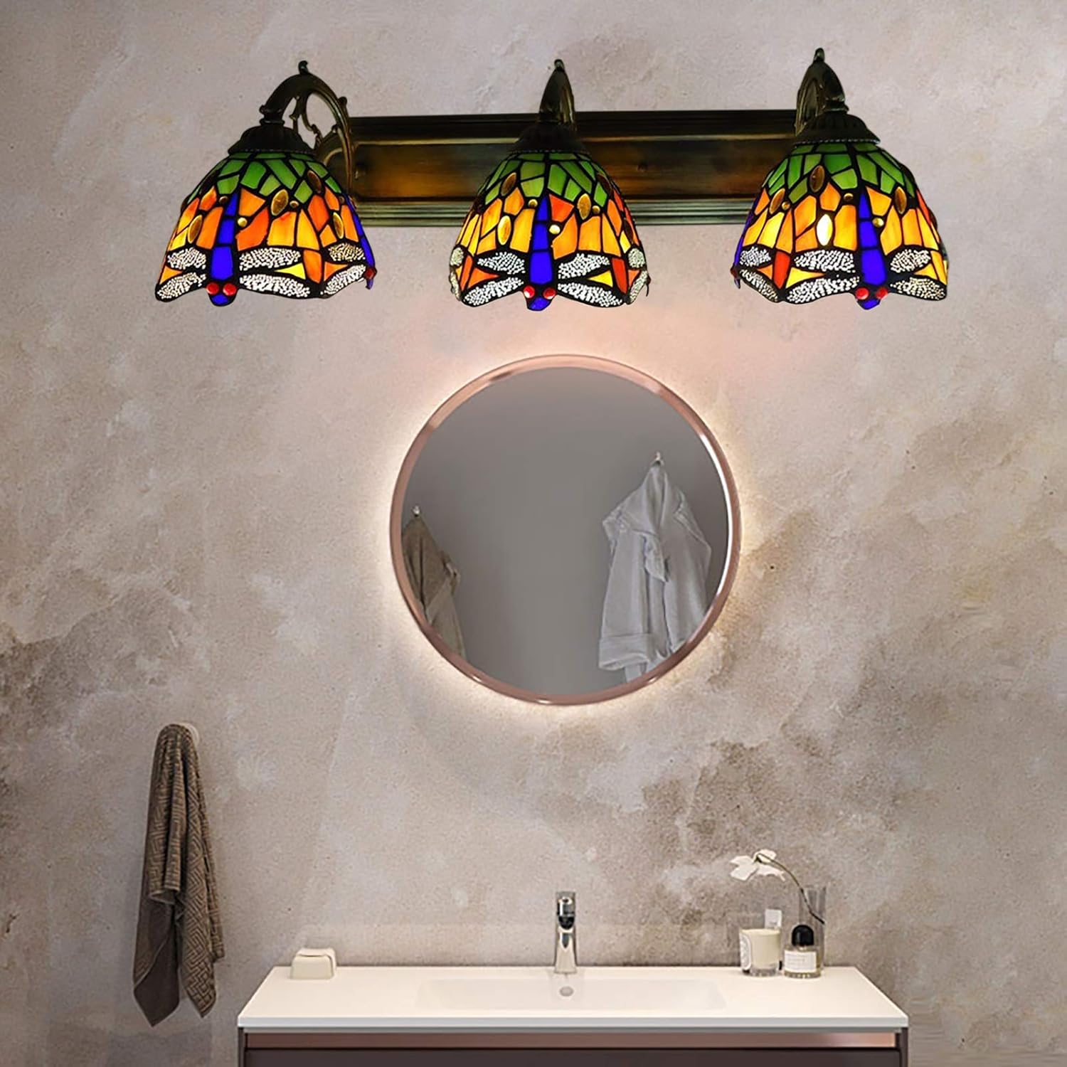 Light InformationCategory: Sconce LightingsLighting Theme: DragonflyShape: DomeDimensionsShade diameter: 16cm (6.3”)Board length: 60cm (23.6”) Width: 12cm (4.72”)Lamp height: 22cm (8.66”)Bulb InformationBulb Base: E27Number Of Lights: 3 LightsBulb Included Or Not: Bulb Not IncludedBulb Type: LED/Incandescent/FluorescentColorFinishes: Bronze FinishOthersColors: Blue,Green,OrangeMaterials: Art Glass,MetalLighting Styles: Casual,Shabby ChicSwitch Types: HardwiredLighting Types: General Lighting,LED LightingShipping Weight: 3.5KGNet weight: About 2.9kg