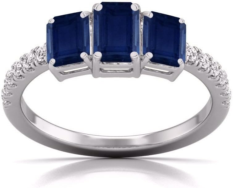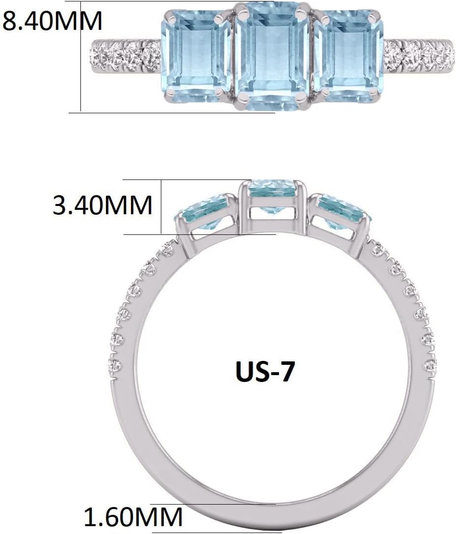 A three-emerald-cut gemstone ring in 14K white or yellow gold featuring options like aquamarine, ruby, sapphire, and more would be truly breathtaking. Each gemstone option brings its own unique beauty and symbolism to the design. a three-emerald-cut gemstone ring in 14K white and yellow gold offers a stunning combination of elegance, versatility, and symbolism, making it a perfect choice for commemorating special occasions or as a meaningful gift for a loved one.