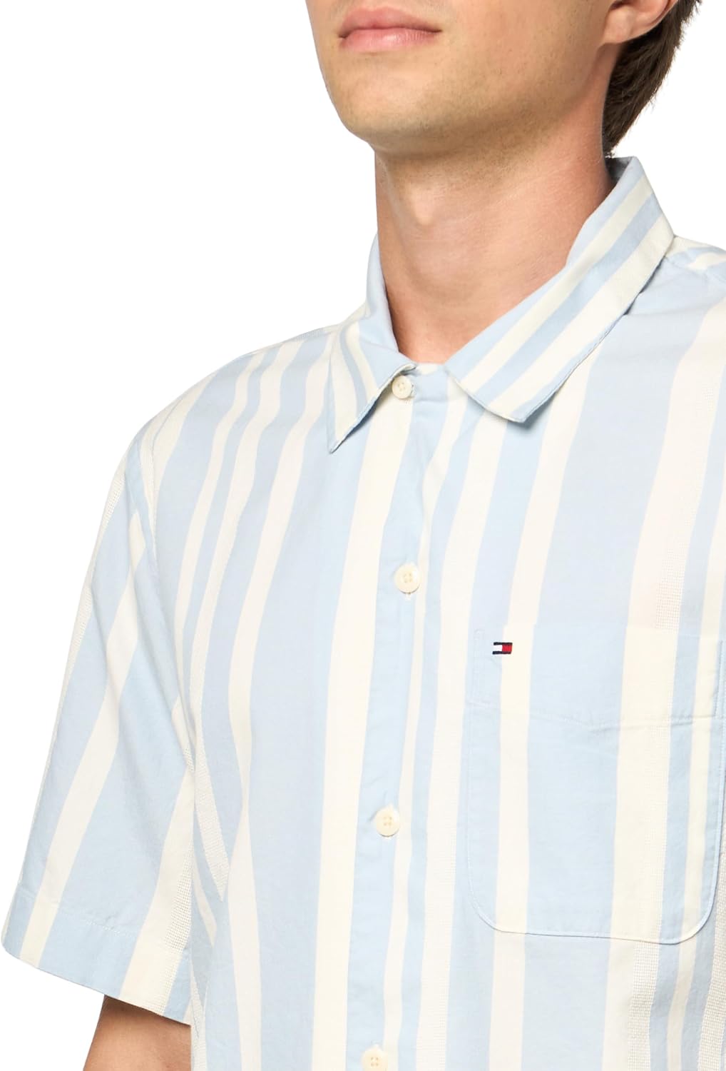 Introducing Tommy Hilfiger's collection of men's button-down shirts, meticulously crafted for style and comfort. Made from premium fabric, these short-sleeve casual shirts offer an extra level of softness, making them the perfect choice for everyday wear in summer. Tommy Hilfiger's button-down shirts for men are constructed from premium fabric and feature camp collars, tropical design details, and available in a range of floral, tropical, and stripe designs. Comfortable and naturally breathable, these shirts are a versatile addition to any wardrobe. Designed with a regular fit that's slightly slimmer through the chest and shoulders, these short-sleeve button-down shirts offer a casual yet refined look, complete with signature flag embroidery. Pair them effortlessly with your favorite Tommy Hilfiger shorts, pants, jeans, or jackets for versatile styling options suitable for any occasion, whether it's a casual outing or a formal event. Ideal for daily wear, work, school, events, vacation, or sports, these men's shirts are a must-have. Treat yourself or surprise a loved one with this timeless piece, perfect for fathers, brothers, boyfriends, husbands, sons, or friends. Elevate your everyday style with the unbeatable quality and sophistication of Tommy Hilfiger's men's button-down shirts.
