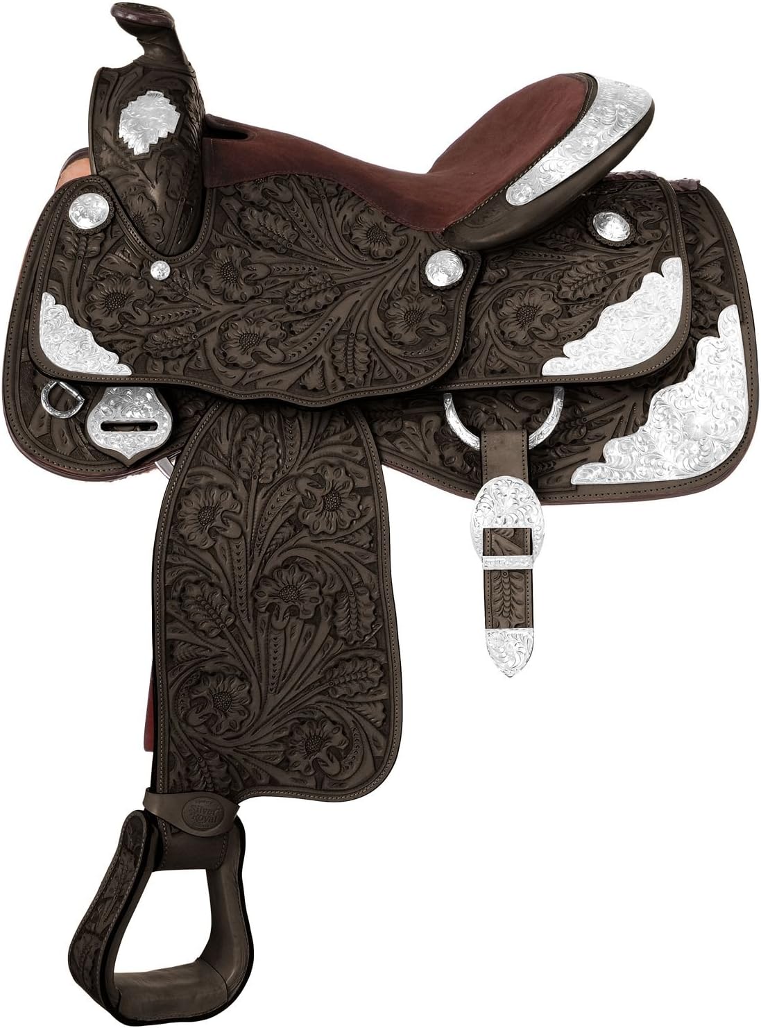 Bars: Full Quarter. Horn: 2". Swell: 13 1/2". Gullet: 7 1/2". Cantle: 3 1/2". Skirt: 29" x 32". Rigging: 7/8 Drop D. Weight: 34 lbs. Blevins style quick change buckles. Neoprene in skirts. Premium Classic Premier Silver Show.