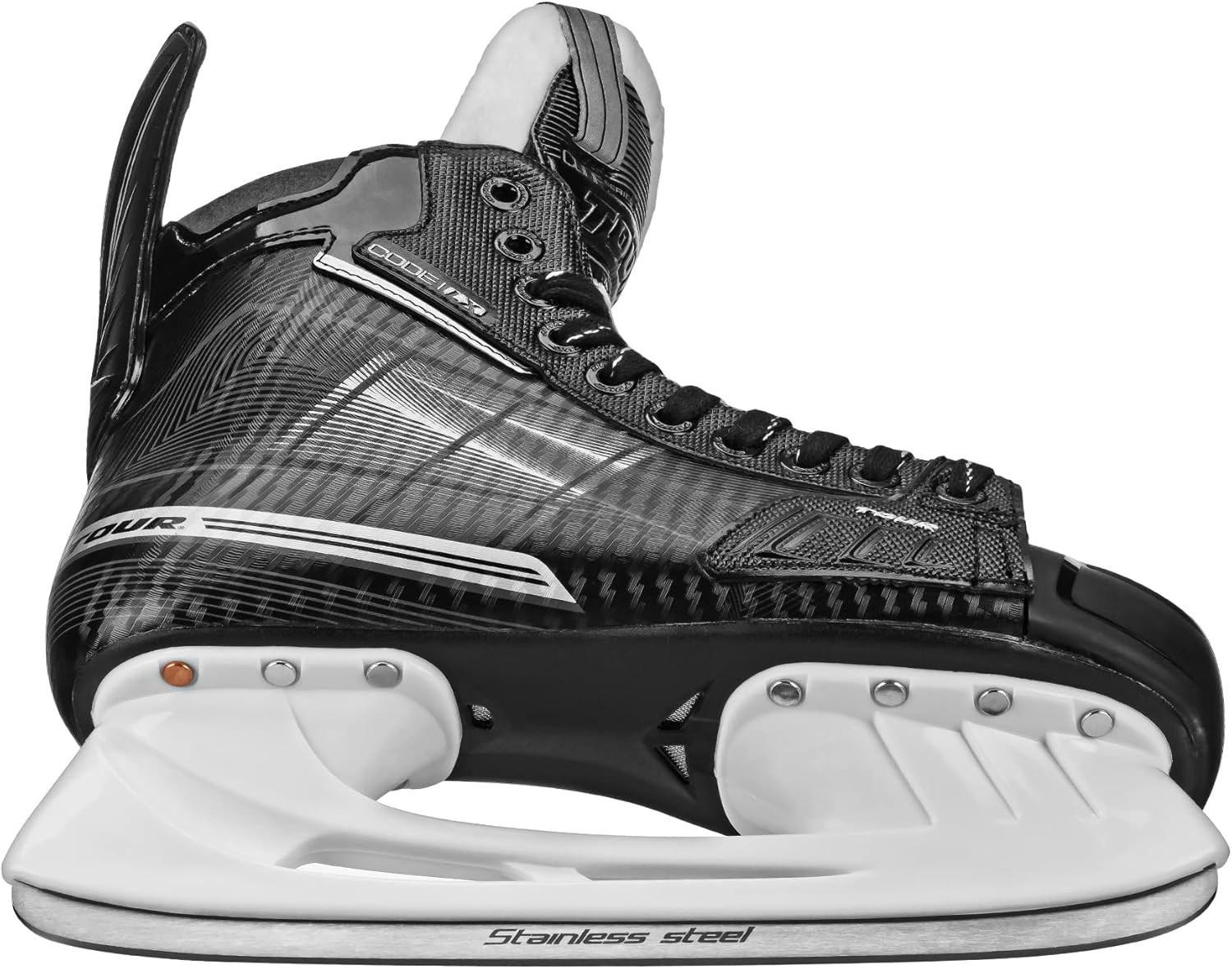 Comfortable, durable ice hockey skates that will hold up for long hours on the rink or pond. Great for beginners or casual rec players who want good quality entry level skate. Deluxe foam padding and thick felt tongue wraps your foot in comfort. Lace them up tightly and feel the firm ankle support of the strong, protective boot, which has composite quarter panels and a stylish technical finish. Perfect skates for hockey league, pick-up games, pond hockey, lake hockey, and ice skating. Choose the closes men’s shoe size for the best fit. Skates should be sharpened before first use.