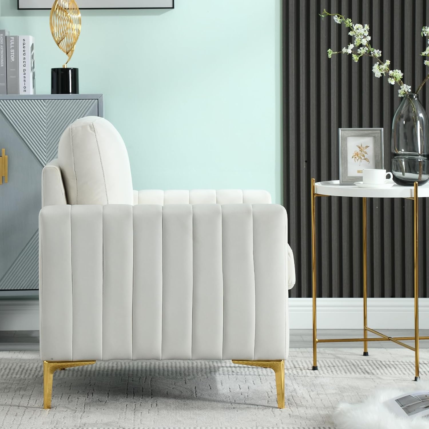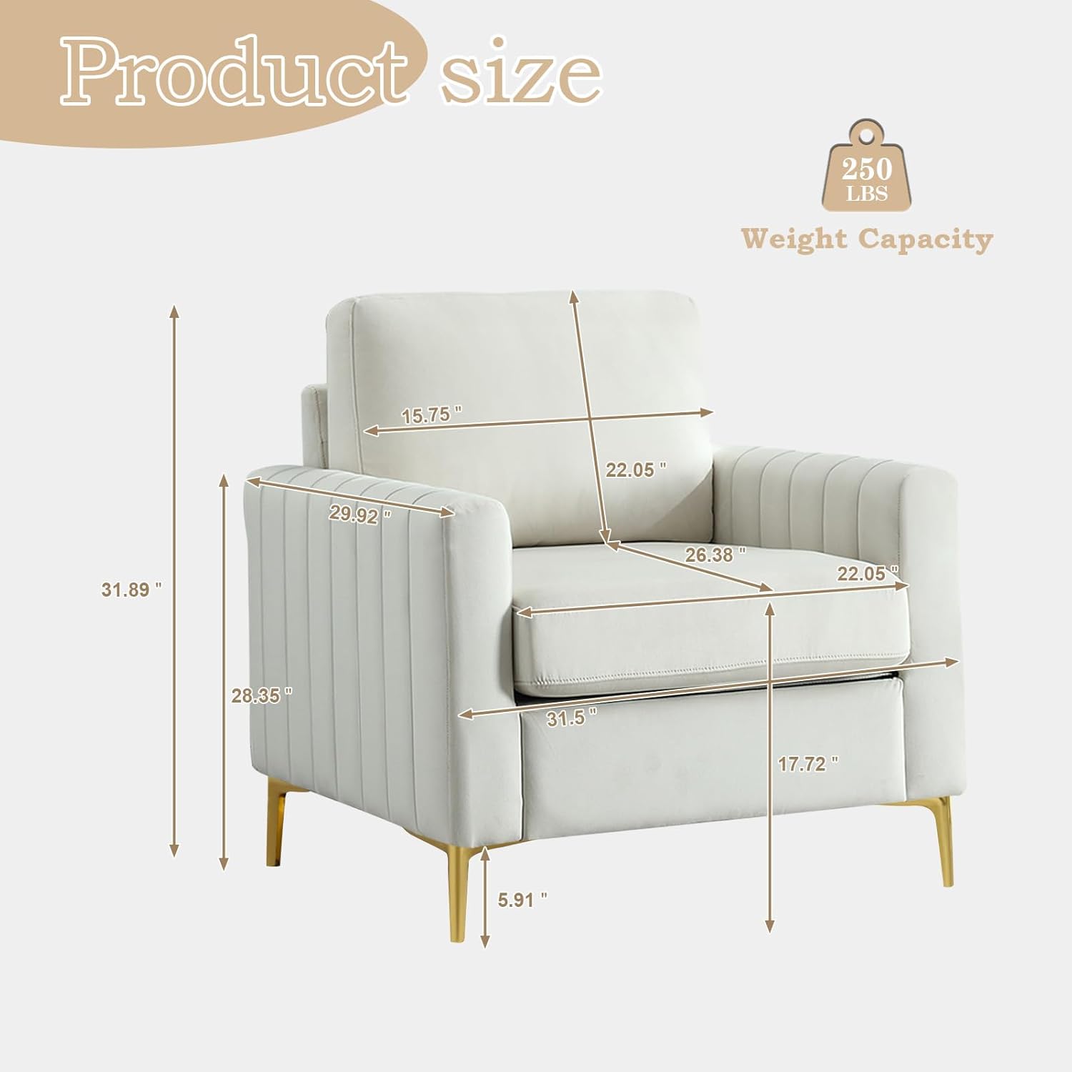 For a fresh spot in your space, turn to this Deolme velvet armchair! Mid-Century Modern meets glam in this elegant living room chairChair size: 31.5"W x 29.92" D x 28.35"H, Seat size: 22.05" W x 26.38"D Seat Height to floor: 17.72"Leg height: 5.91"Arm Wide: 4.33"Material: Velvet 100% PolyesterColor for choice: Beige/ blue/ green/ pinkBack Style: Cushion BackFinish Type: PolishedRoom Type: Living Room chair/ bedroom chairs/ corner chairs/ club chairs/ office chairUnique chairUnique luxe accent chair breathes warmth into your home with its inspired profile and linear detai, and creates modern cozy atmosphere in your home office and enhances the surrounding decor.Hand- crafted decorative chairIts opulent color, soft polyester upholstery, and vertical channel tufting - all expertly hand- crafted for the ultimate showstopper! Maximum comfort & cozythere are plenty of comfy features like its sturdy frame and plush filling so you can lounge in style in any part of the house - from your living space to office or even a hideaway nook.Ergonomically Designedcomfortable seat cushion filled with soft sponge, upholstered deep seat and ergonomic back cushion.