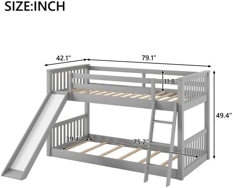 Overall Dimension: 78.2''L*42''W*46.5''H. Overall Weight: 93lbs. Upper/Down Bed Weight Capacity: 400lbs/No Limit. Features: ①Clear instructions for the easy assembly ②Modern sturdy kids bunk bed with slide ③High quality of the bed frame ④Perfect height for adults, teens, and kids ⑤ Easy Assembly
