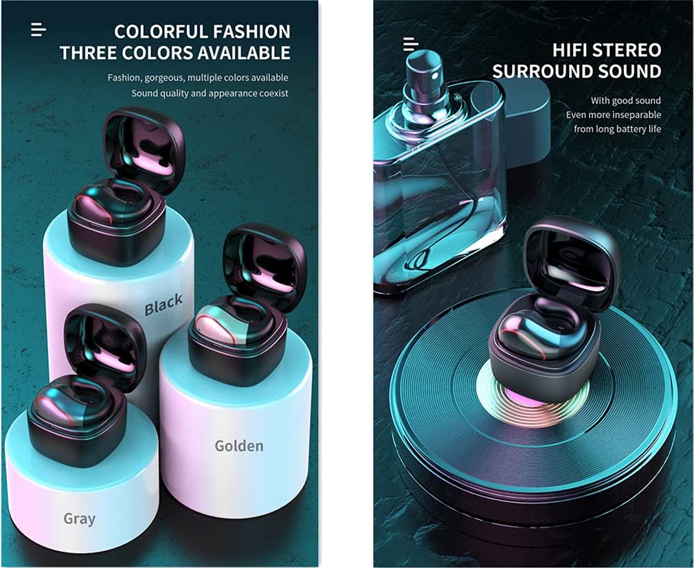 Professional TWS Stereo Sound Bluetooth Wireless EarphonesAdopting lossless HD Rendering Technology that delivers deep bass and crystal crisp treble.Support HSP, HFP, A2DP, AVRCP. Provides in-call stereo sound and fast,stable transmission.With round soft silicone eartips, it can offer more wearing stability and comfort when in use.Microphone with a noise reduction function can better maintain the purity of the call without being disturbed by background sounds.Product specifications:Product Name: Sports Games EarbudsBluetooth version: V5.0Standby time: 48HTalk time: 5HMusic time: 5HCharging time: 0.5-1HTransmission distance: ≥10M (open position)Working temperature range: -20℃-40℃Speaker diameter: 10mmSpeaker impedance: 16 ohmsSpeaker response frequency: 20HZ-20KHZCharging time: about 1hCharging voltage: DC5VColor: black, gold, grayWeight: about 0.25gSpecial Technology: Batteries: 1 Lithium Polymer batteries required. (included)Wireless communication technologies: BluetoothConnectivity technologies: Wireless, BluetoothSpecial Features: Wind Noise Reduction, Noise CancellationOther display features: WirelessDevice interface: primary Microphone, ButtonsAudio Jack: WirelessForm Factor: HeadphonesPackage Contains:1 * Wireless Headphone1 * Type-C Charging Cable1 * Charging Case1 * Use Manual