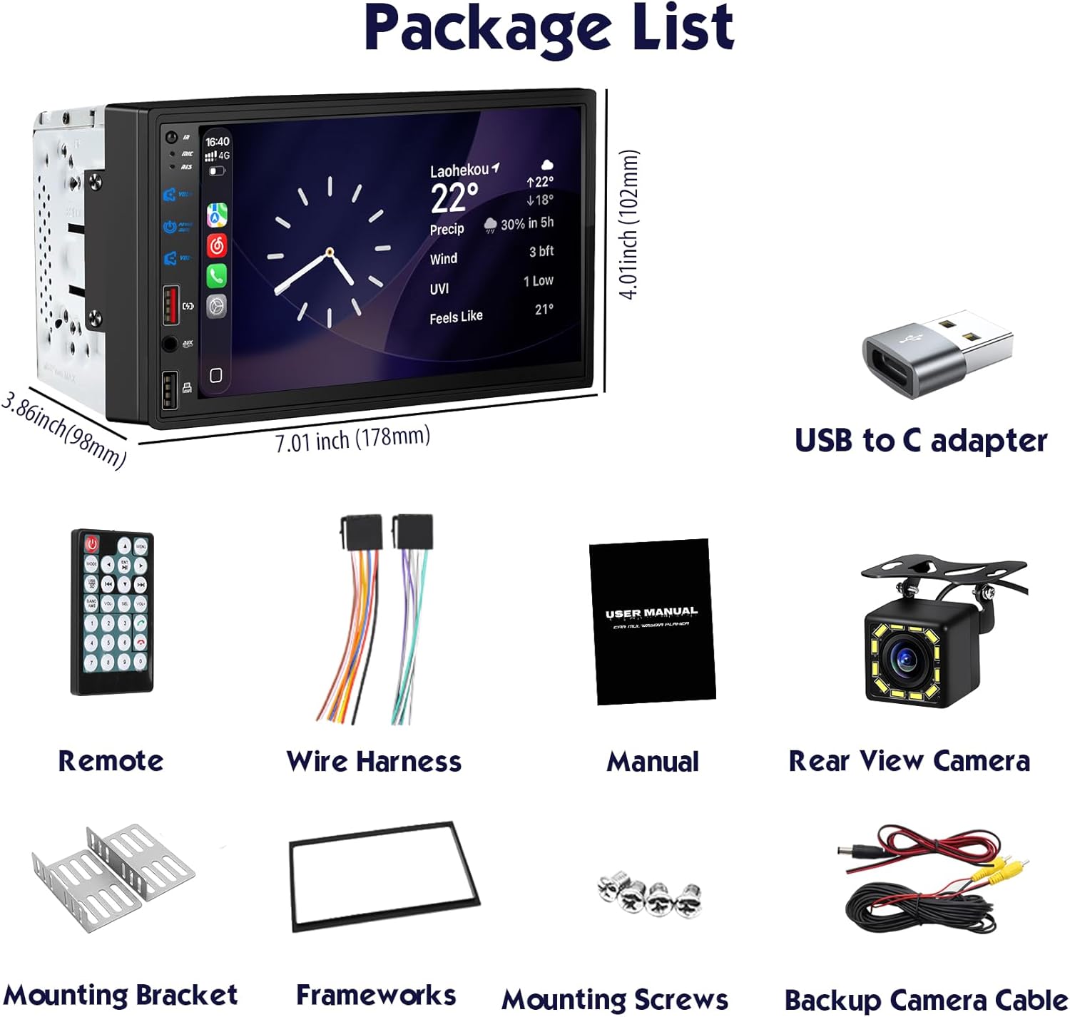 | BuiltIn Media | Backup Camera, Car Stereo, Remote, Standard installation kit, User Manual |
