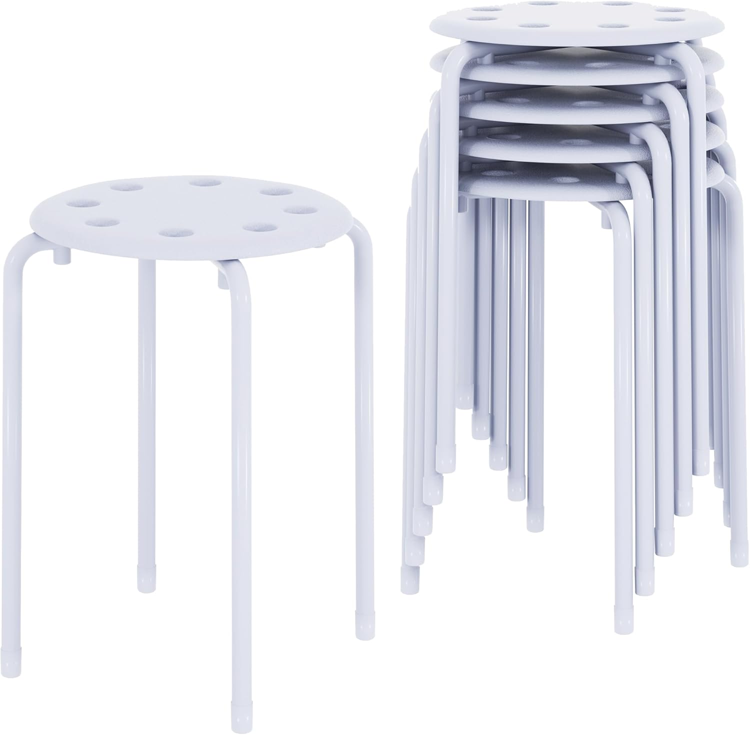 VECELO 6-Pieces Stacking Stools for Multifunctional Use ! These fun and whimsical round stools combine metal and plastic materials into a unique perforated disc design. The sturdy metal frames and plastic seats provide ample weight support while keeping them lightweight and portable. Available in vibrant colors like red, blue, yellow, green, and black, they add a playful pop to any space.Ideal as casual seating or decorative accents, these compact stools can be conveniently stacked for space-saving storage. Their clever design makes them perfect for use at home, the office, or outdoor events - bringing a touch of character wherever you go.SpecificationMaterial: Plastic, MetalDimension: 11.8 x 11.8 x 17.7'' (L x W x H)Tube Diameter: 0.75"Round Hole: 3 cm/ 1.2'' (Dia.)Max. Weight Capacity: 265 lbsPackage Weight: 20.06 lbsPackage Size: 15.4 x 15.4 x 23.2 InchPlease note that these 6 pieces stacking stools are packaged together and requires no assembly. If you receive a package with missing accessories or a damaged product, please check the contact information in the instructions or on the package box to contact us for brand a new one.