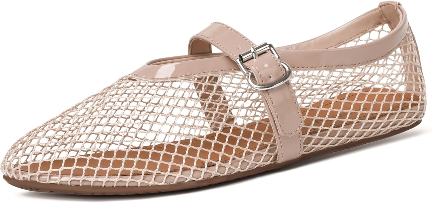 Mesh Ballet Flats Shoes for Women Flats Comfortable Dressy Mary Jane Flats Mesh Flats Round Toe Fishnet Flats for Casual Formal Occasion