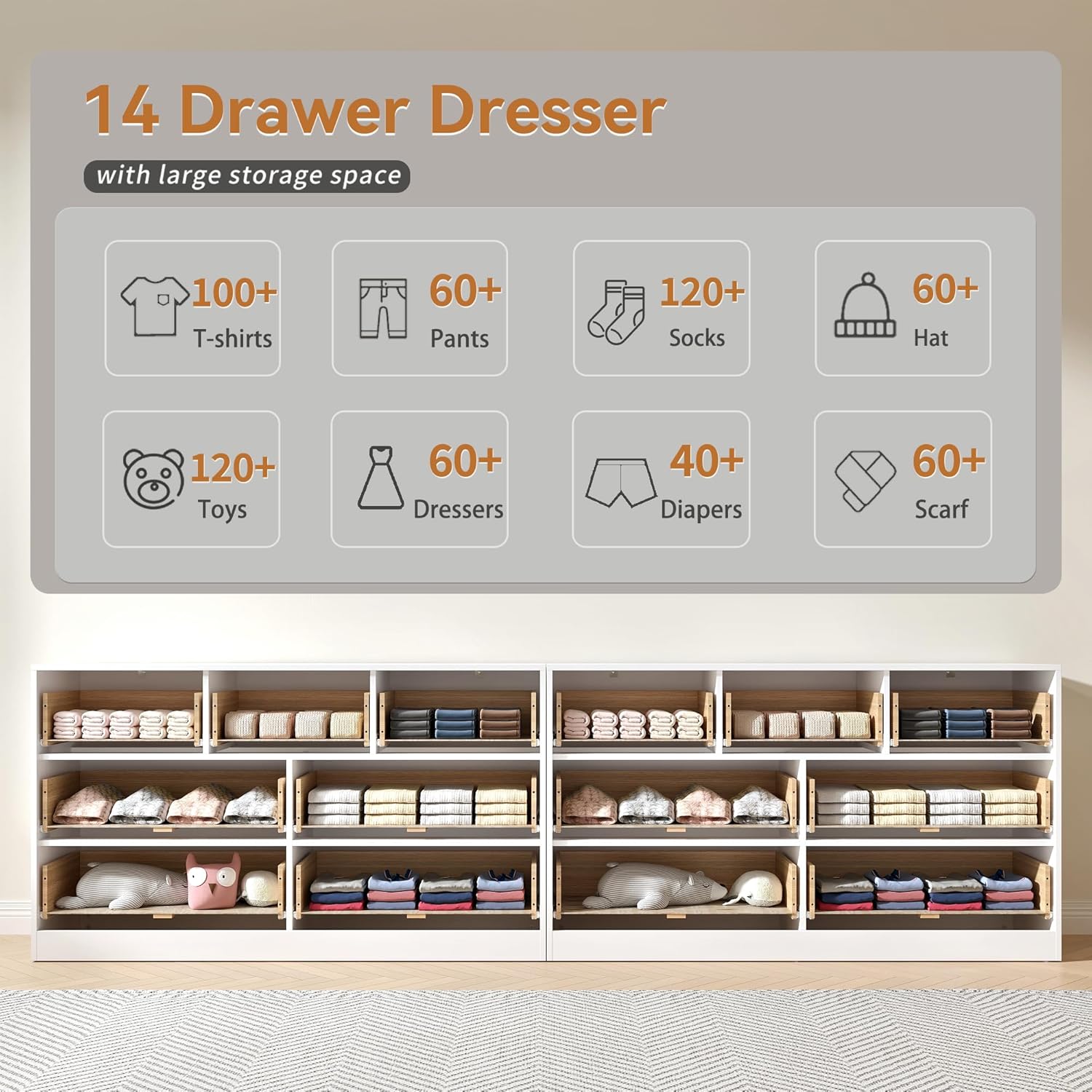 | Size | 14 drawers |
