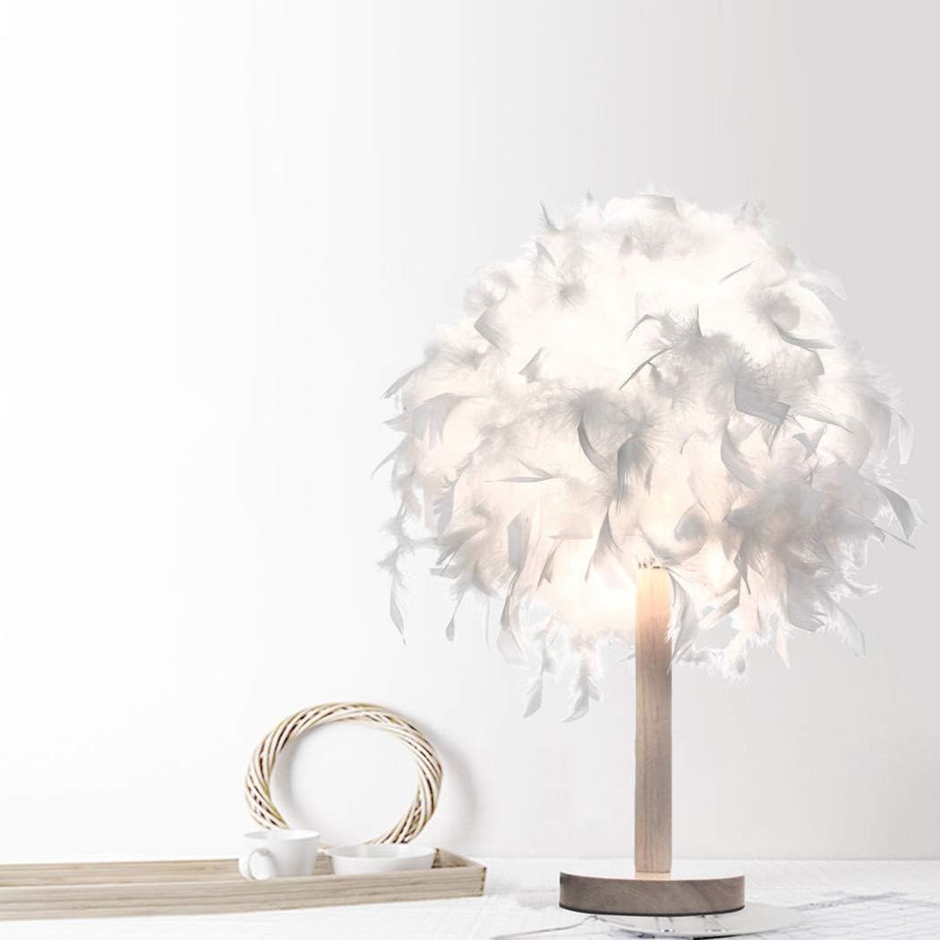 Product Name: Feather Table Lamp/Bedside Desk Lamp/Night LightStyle: Modern StyleThe main application areas: family, study, bedroom, living room, restaurant, bar, corridor, cafe and so on.Material: Wood+ FeatherColor: WhiteSize: Diameter 34 High 44 (cm)Voltage: 110-240 (V)Light Source Power: up to 40 (W)Lamp Specifications: E27*1Whether to include the bulb: NoLight source type: recommended LED bulb 5-10W, energy-saving bulb 10-20W, Edison bulb 30-40W.After-sale: If the product has any damage during transportation, please write to us in time, we will give you a satisfactory answer as soon as possible;About the service:If you have any questions, please contact us by email and we will get back to you as soon as possible.